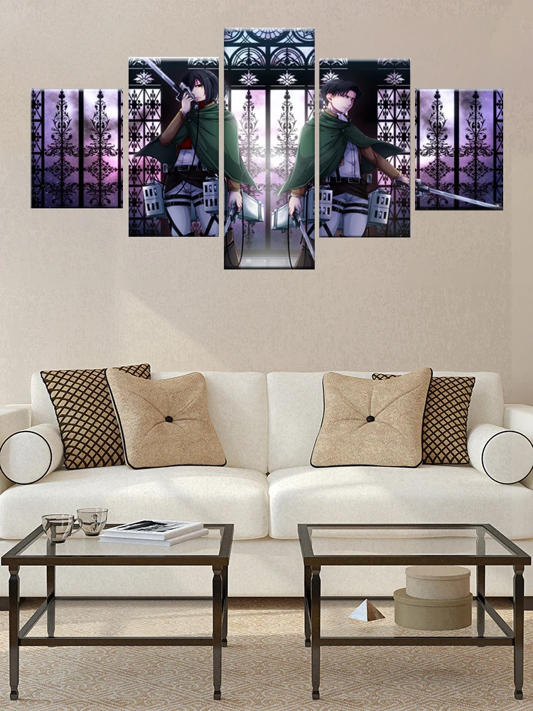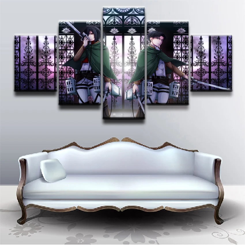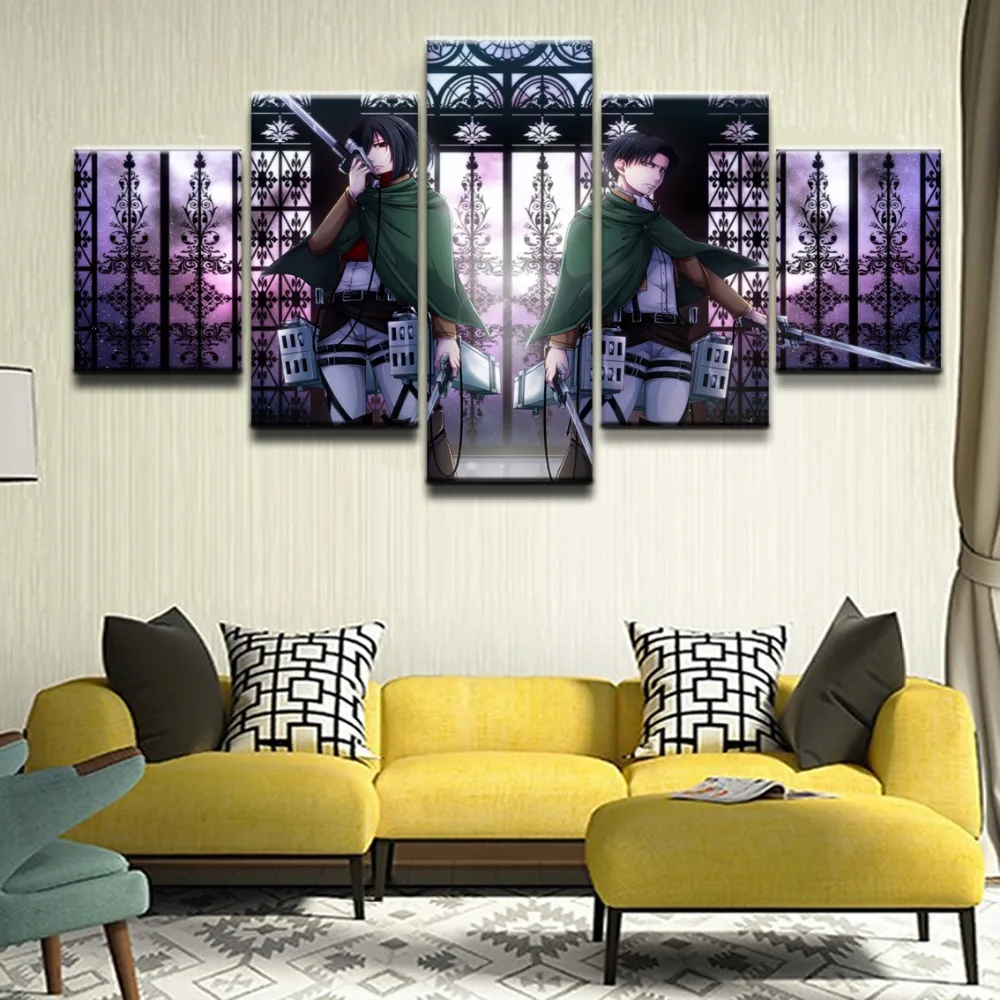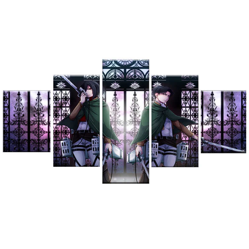 Картины на холсте, настенная рамка, модульные HD-принты, аниме плакат, 5 штук, рисунок Леви Акермана, Микаса Аккермана