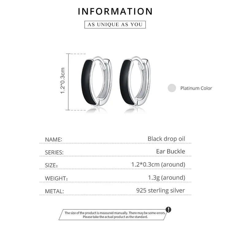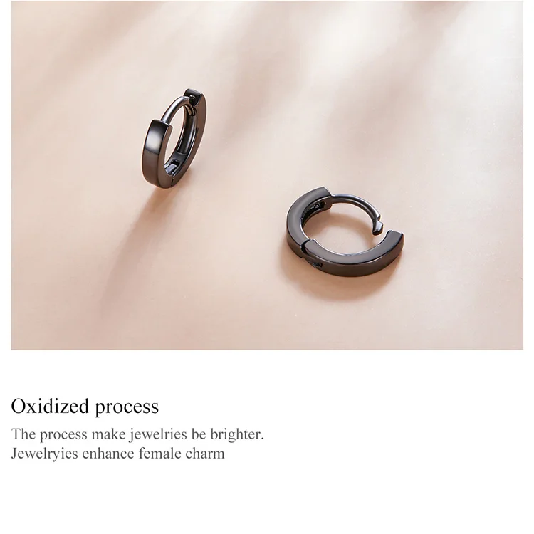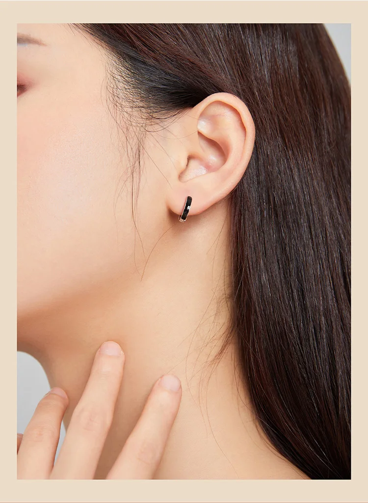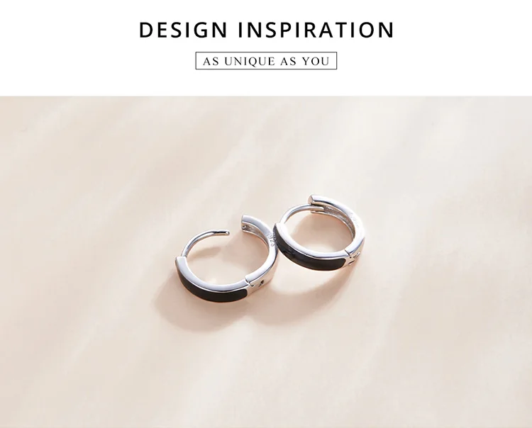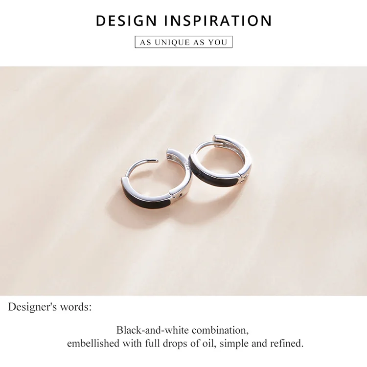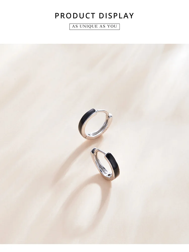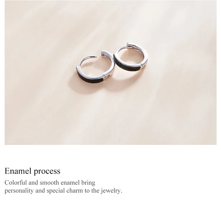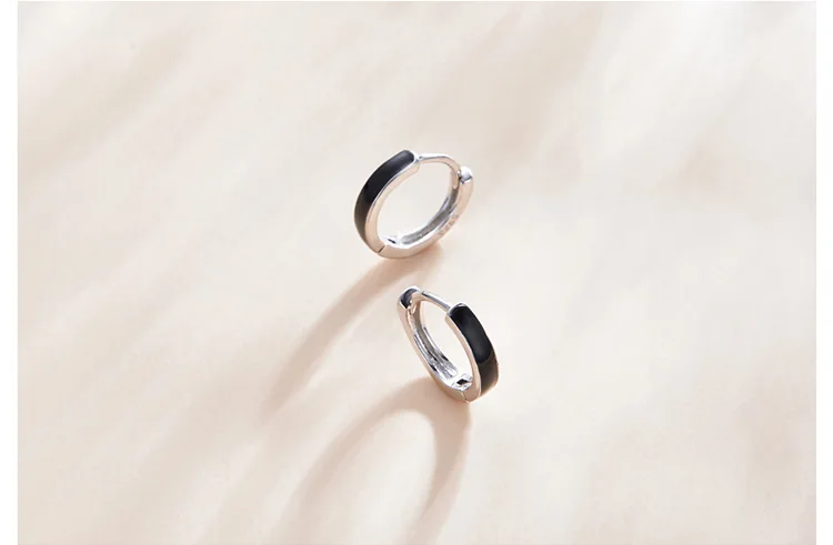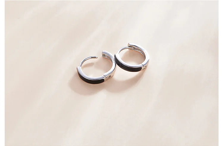 Серьги-кольца женские из серебра 925 пробы, с черной эмалью, CQE1047