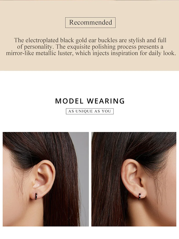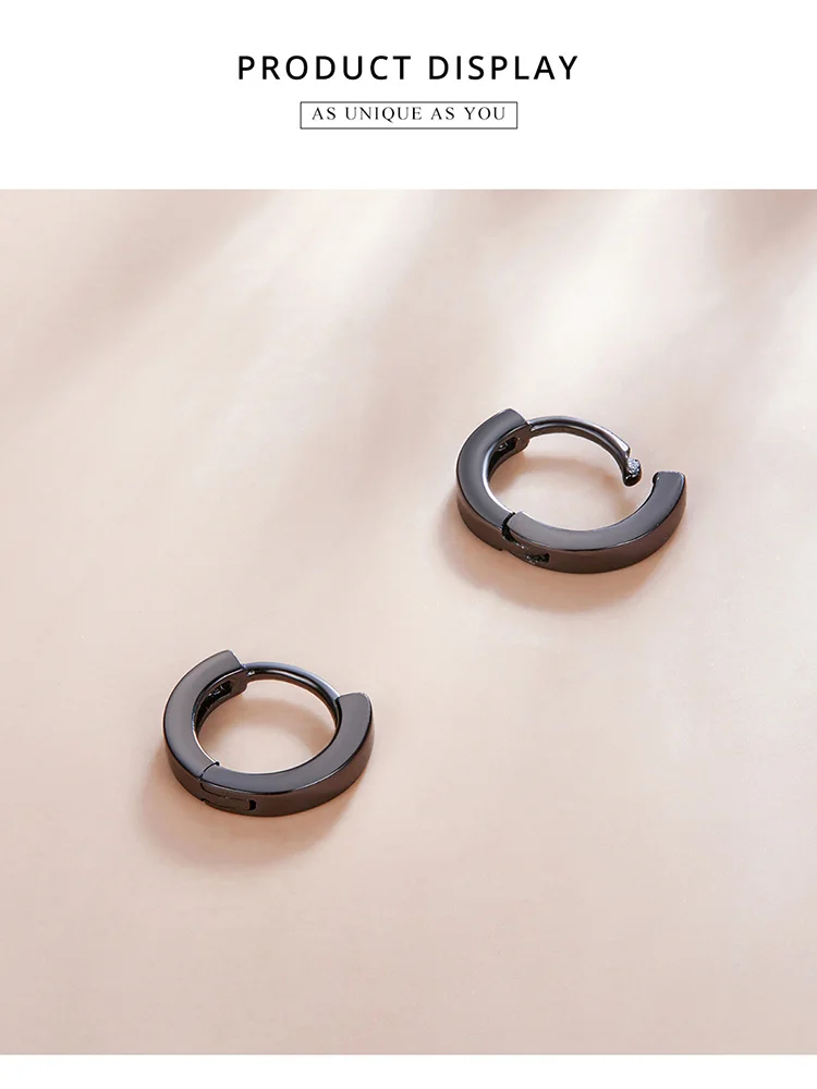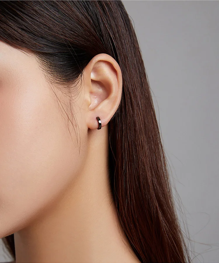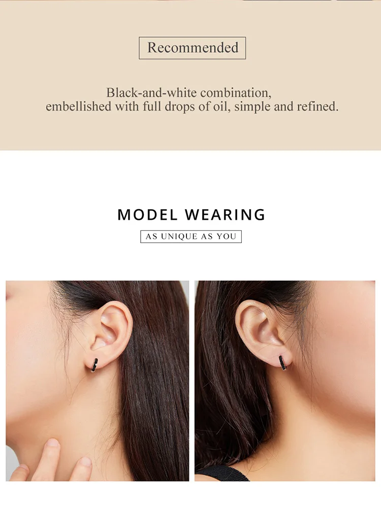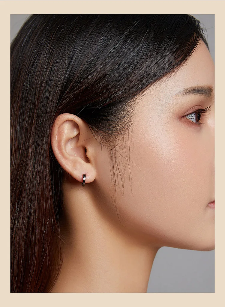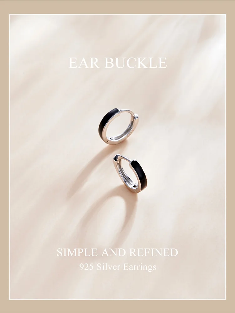 Серьги-кольца женские из серебра 925 пробы, с черной эмалью, CQE1047