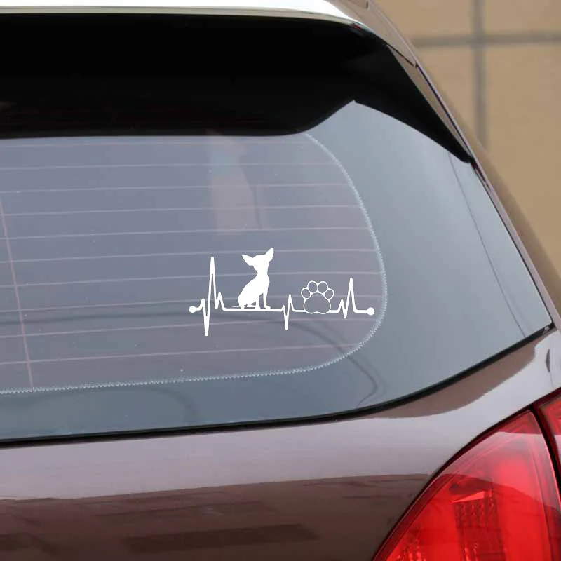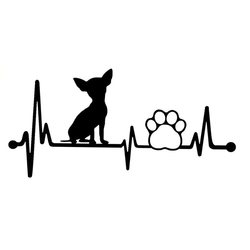 14,6 см * 7 см Симпатичные чихуахуа "кардиограмма сердца", "собачья лапа" черный винилСеребряный стикер автомобиля C22-1069