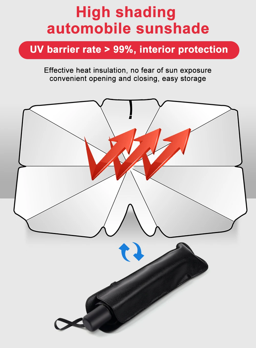 Название: Автомобильный зонт от солнца/лобовое стекло автомобиля материал зонта: UPE сплав Размер: маленький размер: 65х125см большой размер: 79х145см подходит: для внедорожников-хэтчбеков, многофункциональных транспортных средств (пожалуйста, выбирайте размер в соответствии с реальной ситуацией)