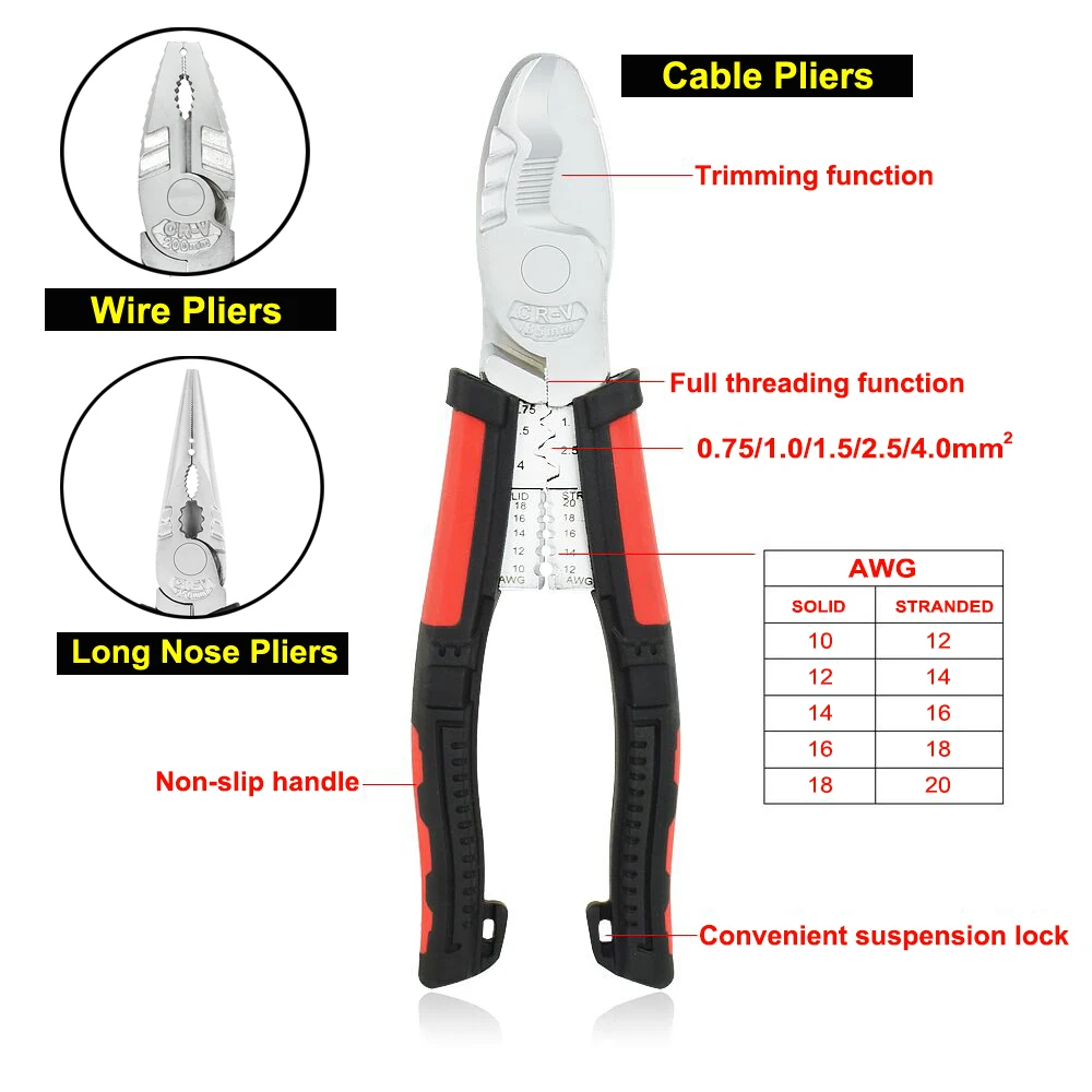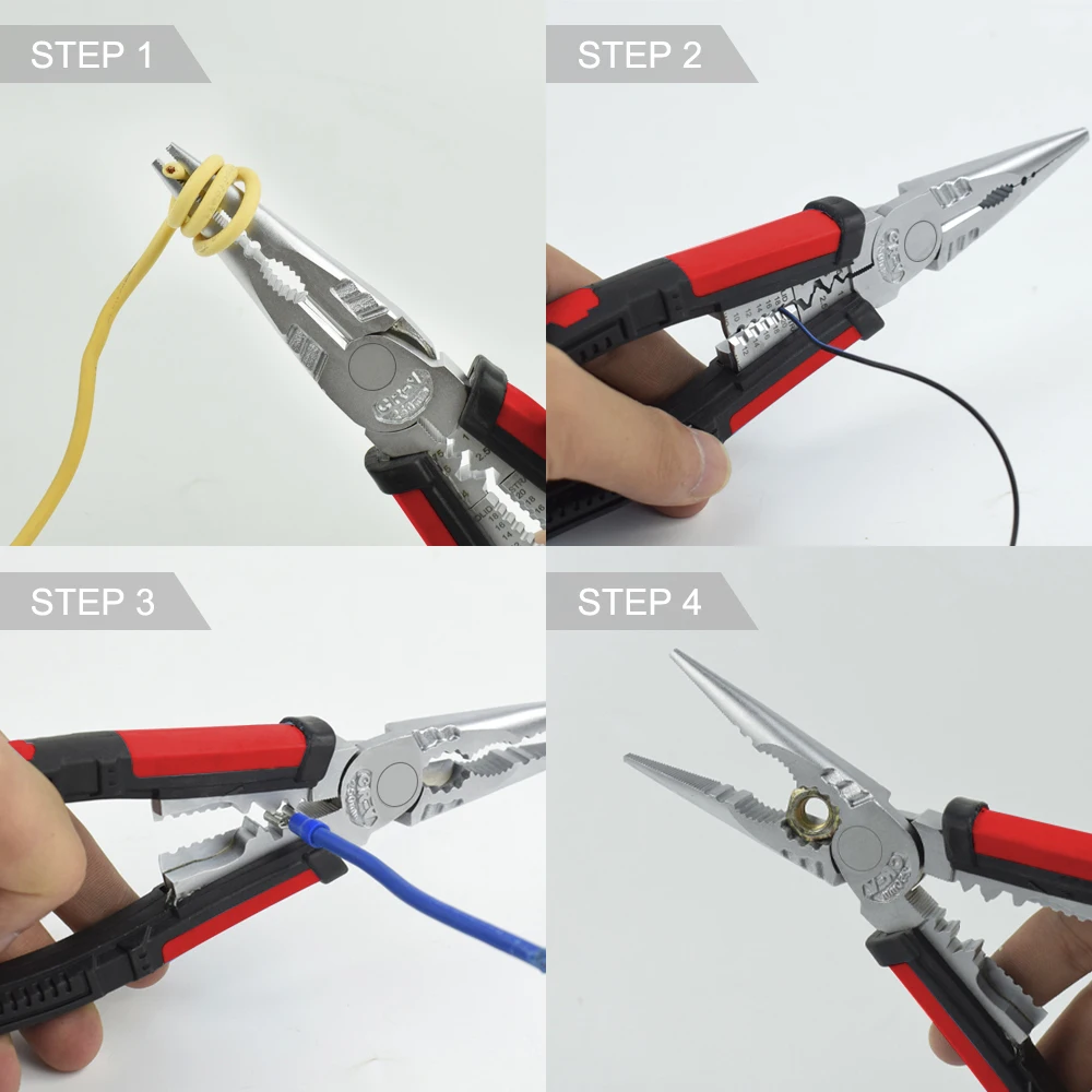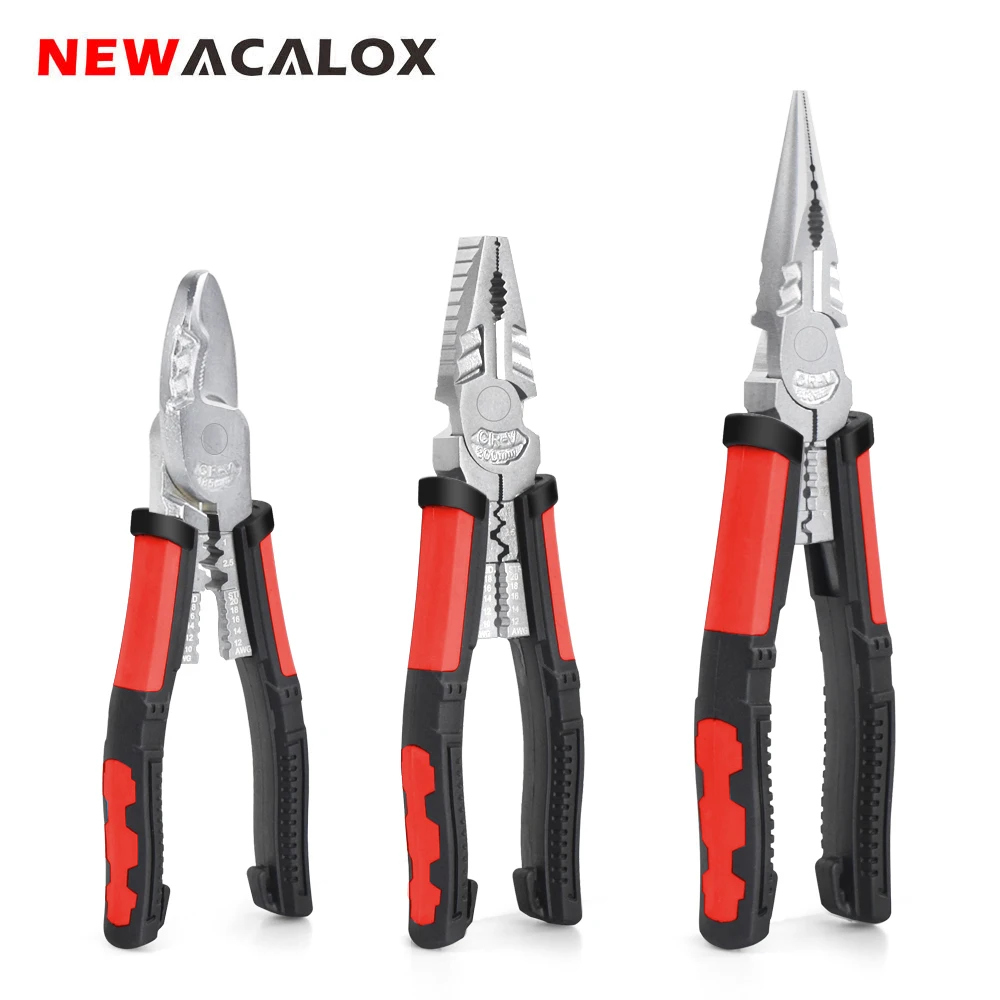 Набор мультитулов NEWACALOX, 8 дюймов, длинные плоскогубцы, кусачки для зачистки проводов, боковые плоскогубцы, обжимной инструмент, ручной инструмент сделай сам