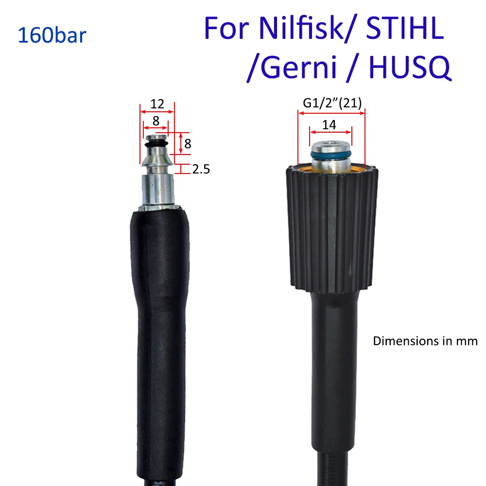 Шланг для очистки воды высокого давления 6 ~ 10 м * 160 бар (2320psi) для NILFISK & STIHL & HUSQVARNA & Gerni моек высокого давления