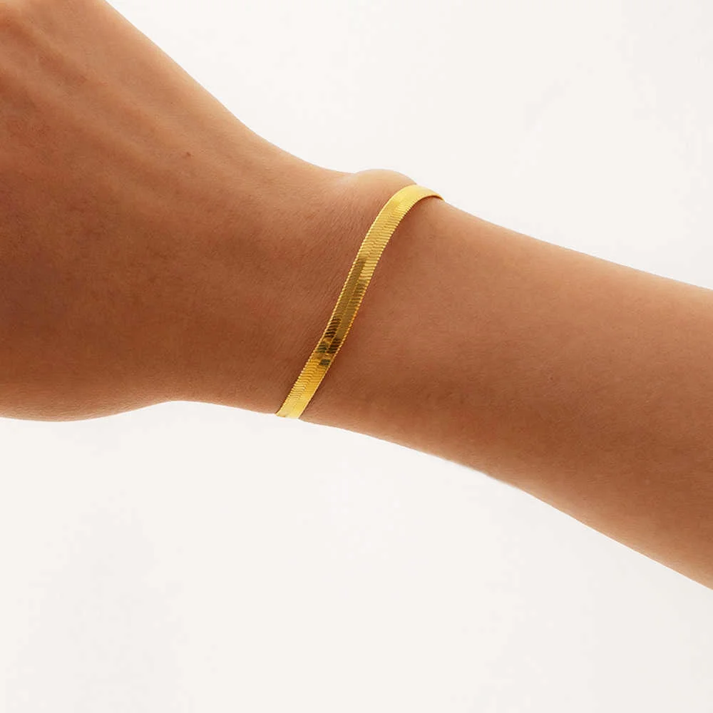 Медные браслеты-цепочки IngeSight.Z, с плоским лезвием, в стиле змеи, простые минималистичные браслеты золотого цвета, браслеты-цепочки на запястье, ювелирные изделия