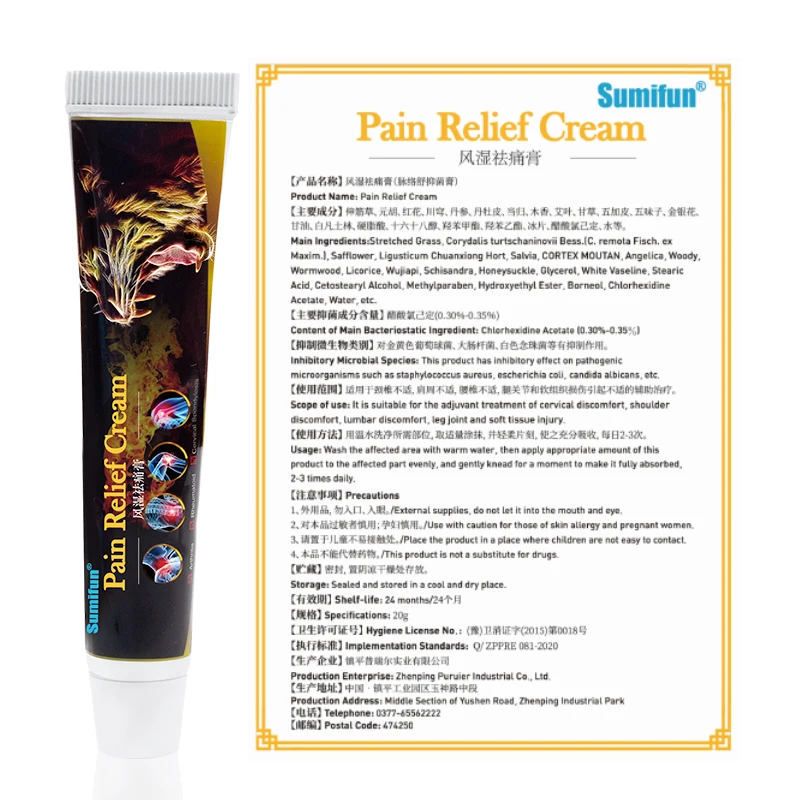 Название продукта:3 шт. тигровый бальзам для облегчения боли кремВес нетто:20 г/шт.Срок годности:24 месяцаХранение:Герметичный, защищенный от светильник, хранящийся в прохладном и сухом месте.Посылка:1 шт мазь без коробка для розничной торговлиОсновные ингредиенты:Растягивающаяся трава, Safflower, Salvia , Angelica,Woody,Wormwood,Licorice,Wujiapi,Schisandra ,Honeysuckle, глицерин, белая вазелин, стеариновая кислота хлоргексидин ацетат, вода и т. Д.Сфера применения:Подходит для адъювантного лечения дискомфорта шейки матки, дискомфорта плеч, поясничного дискомфорта, суставов ног и травм мягких тканей.Использование:Промойте пораженный участок теплой водой, затем равномерно нанесите соответствующее количество этого продукта на пораженную часть и аккуратно разминайте на минуту, чтобы полностью впитать его, 2-3 раза в день.Меры предосторожности:1. Внешние принадлежности, не допускайте попадания в рот и глаза.2. Используйте с осторожностью для аллергии на кожу и беременных женщин.3, поместите продукт в место, где дети не легко связаться.4. Этот продукт не является заменителем лекарственных средств.