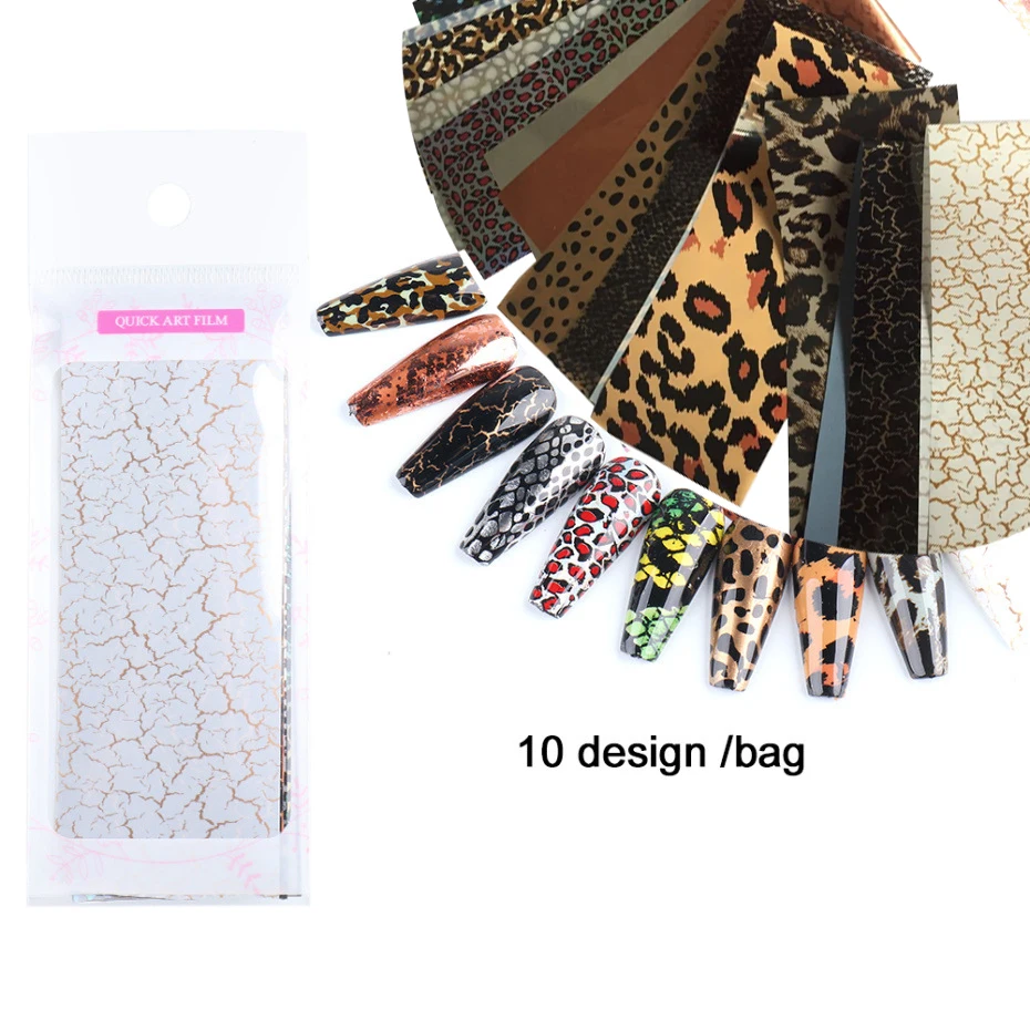 Наклейка из фольги с леопардовым принтом для ногтей, 10 шт.