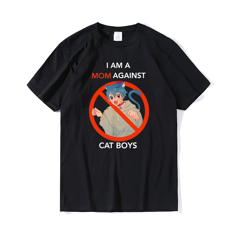 Футболка для мальчика с котом я мама против кота Хлопковая мужская футболка в стиле Харадзюку забавные аниме топы для взрослых Новинка унисекс кавайная футболка