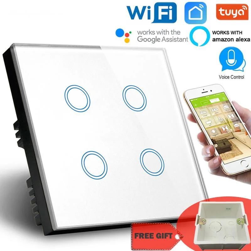 12348 банды Смарт настенный выключатель Wi-Fi и с украшением в виде кристаллов Стекло Беспроводной Выключатель Света приложение Tuya WIFI Пульт дистанционного управления с google дома alexa