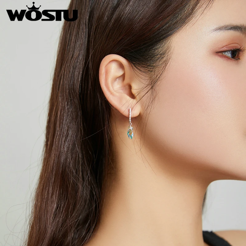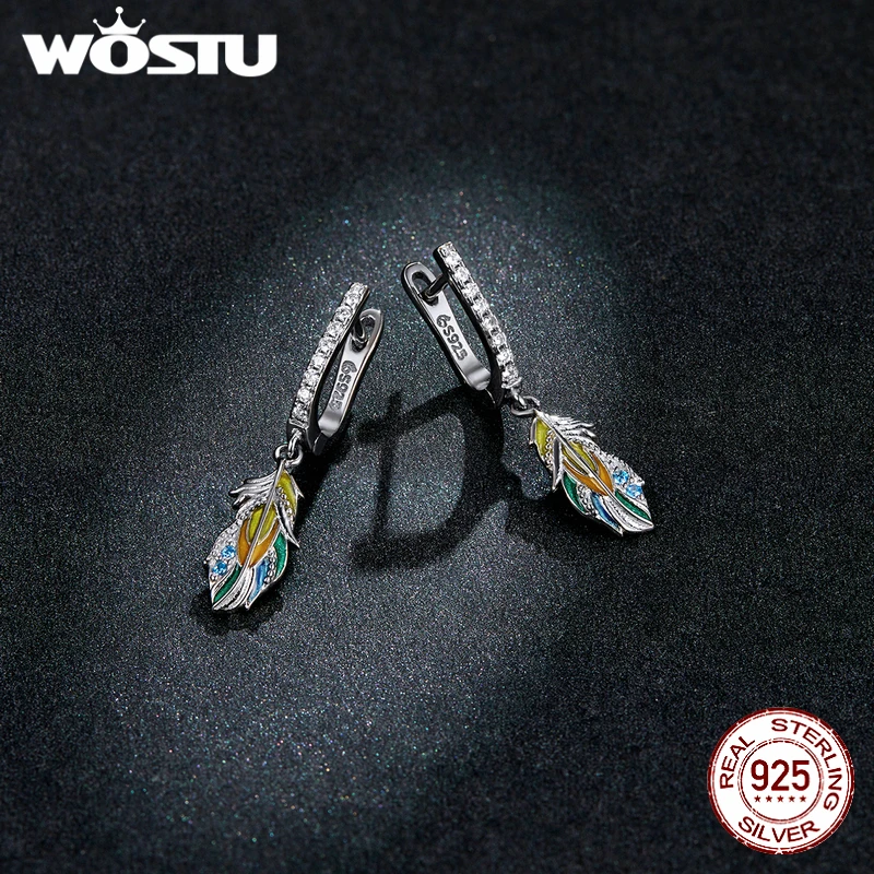 Серьги-подвески женские из серебра 925 пробы, с цветным пером, пряжки для ушей