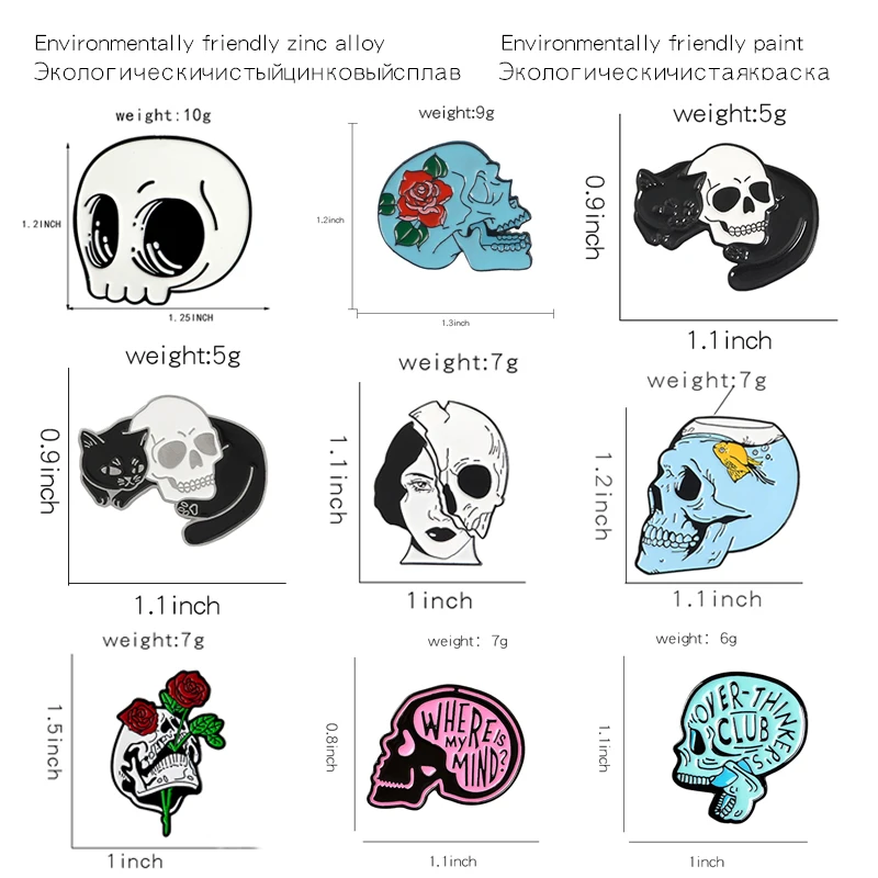 Брошь в виде черепа, с эмалью, в готическом стиле, значок Хэллоуина