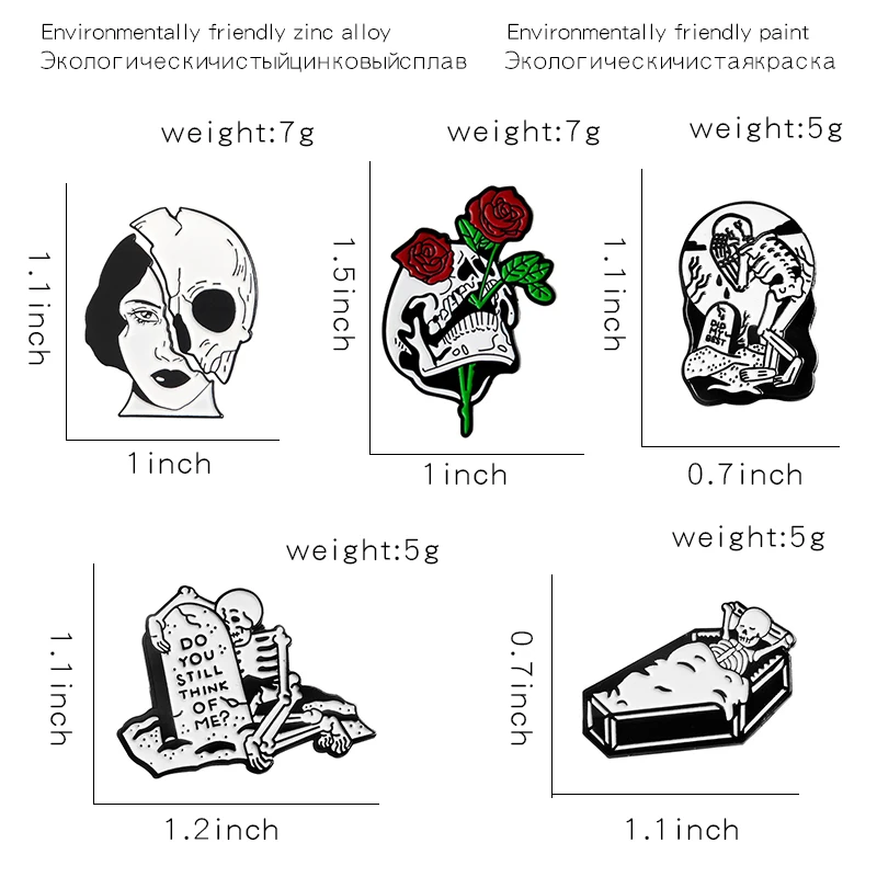 Скелет навсегда! Черно-белые Броши с лацканами для шляпы в стиле па...