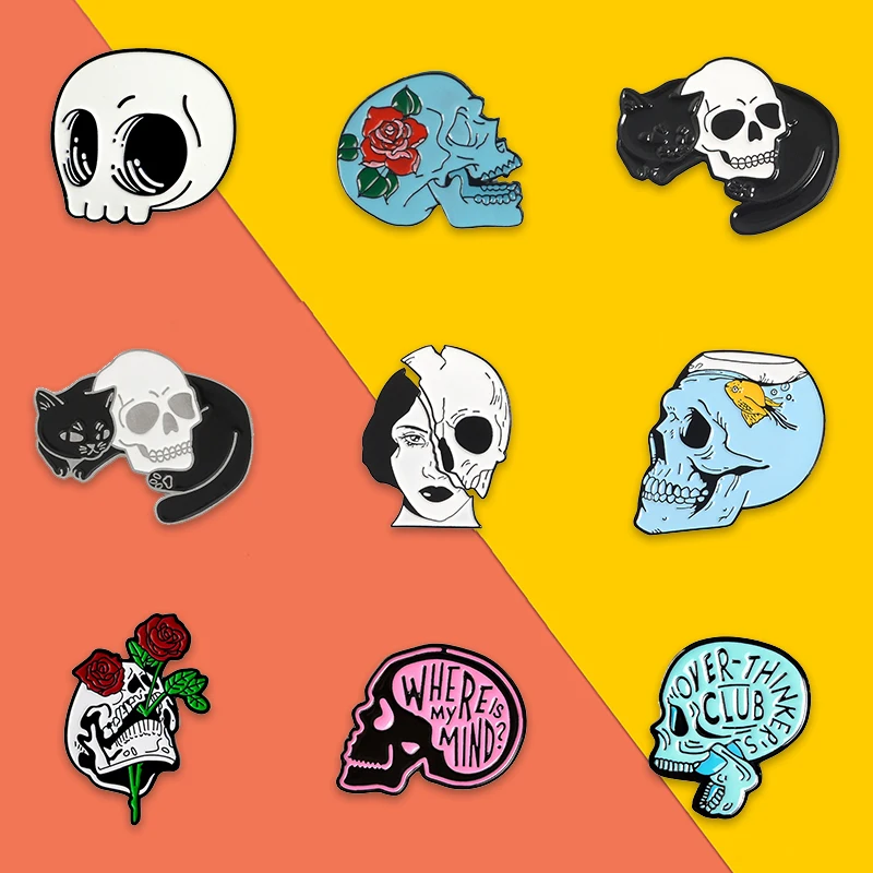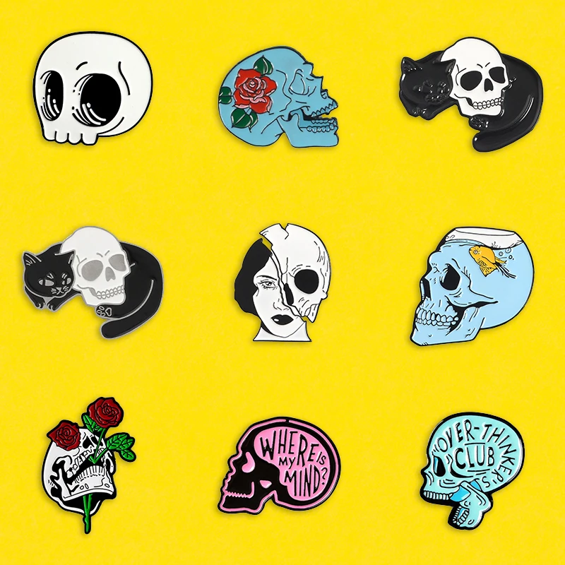 2019 Женская эмалированная темная булавка с изображением лица череп...