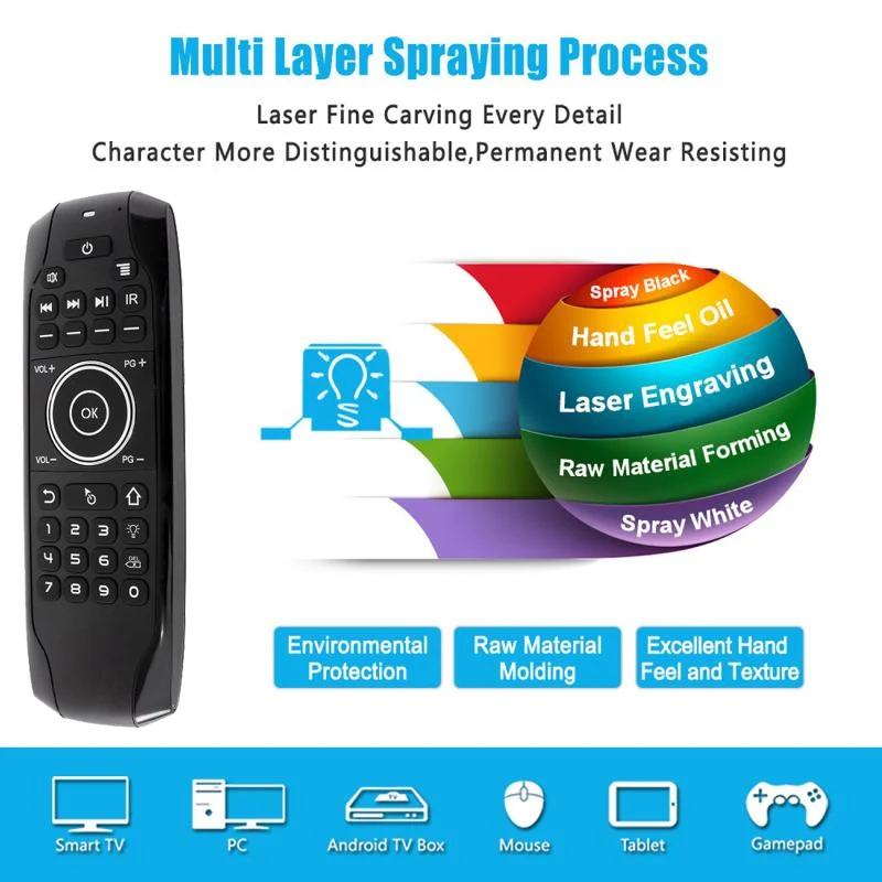 Пульт дистанционного управления G7BTS для Bluetooth 5,0, гироскоп, Воздушная мышь, мини-клавиатура, 5 ИК-обучение, подсветка для Bluetooth Smart TV Box, ПК