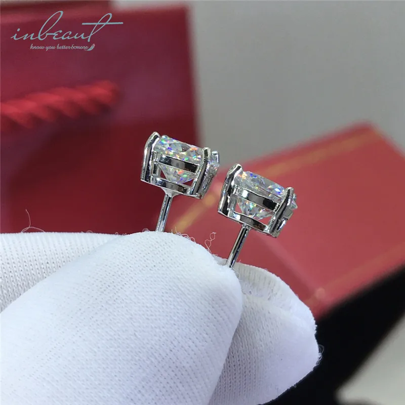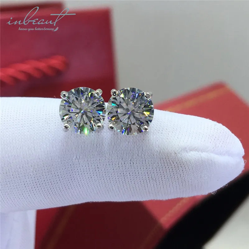 Inbeaut Классический 4 когти 925 серебро всего 2 ct D Цвет Круглый отличный крой D красит Diamond тесты Муассанит серьги-гвоздики