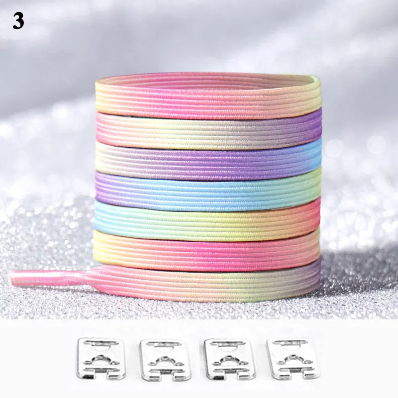 1 пара Пряжка шнурки эластичные красочные плоские шнурки без завязо...