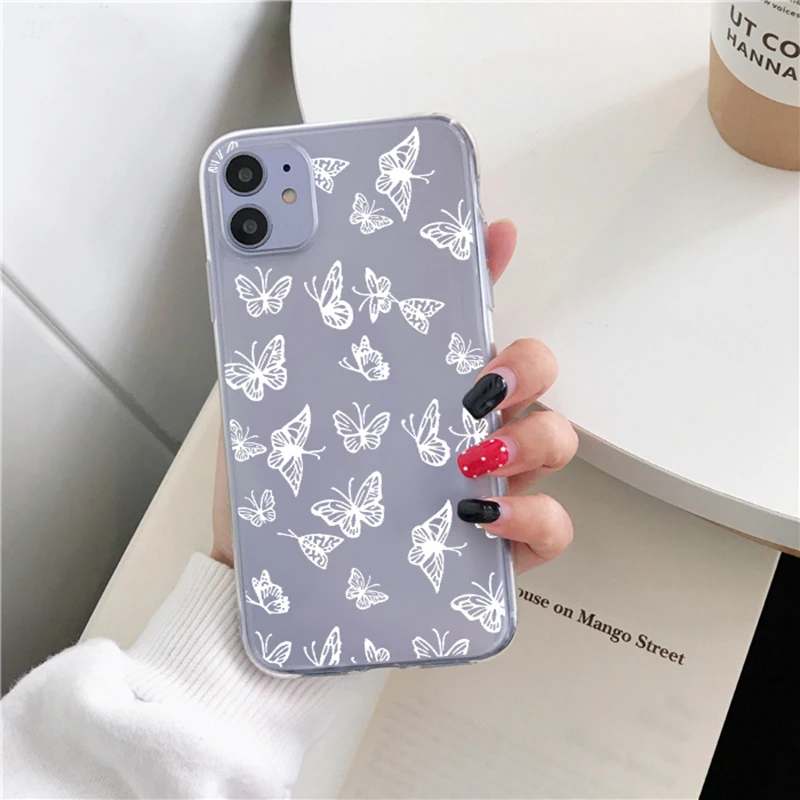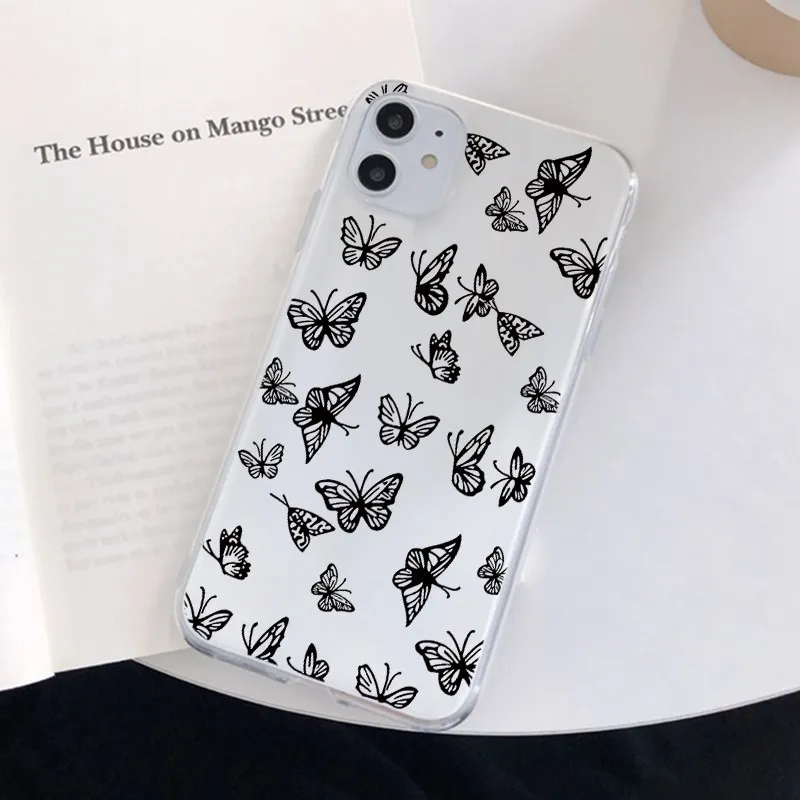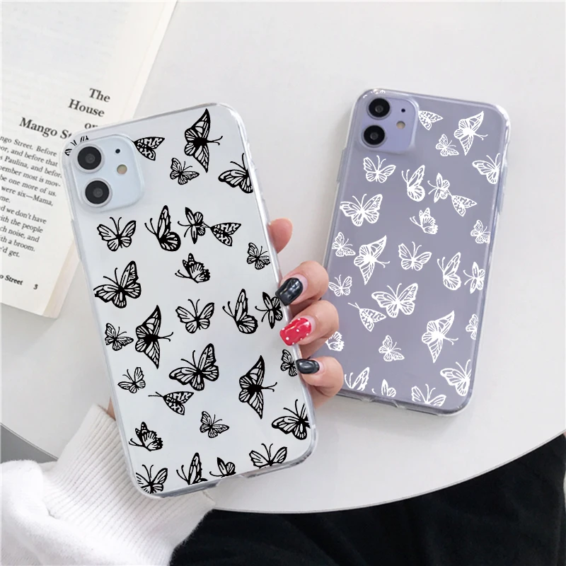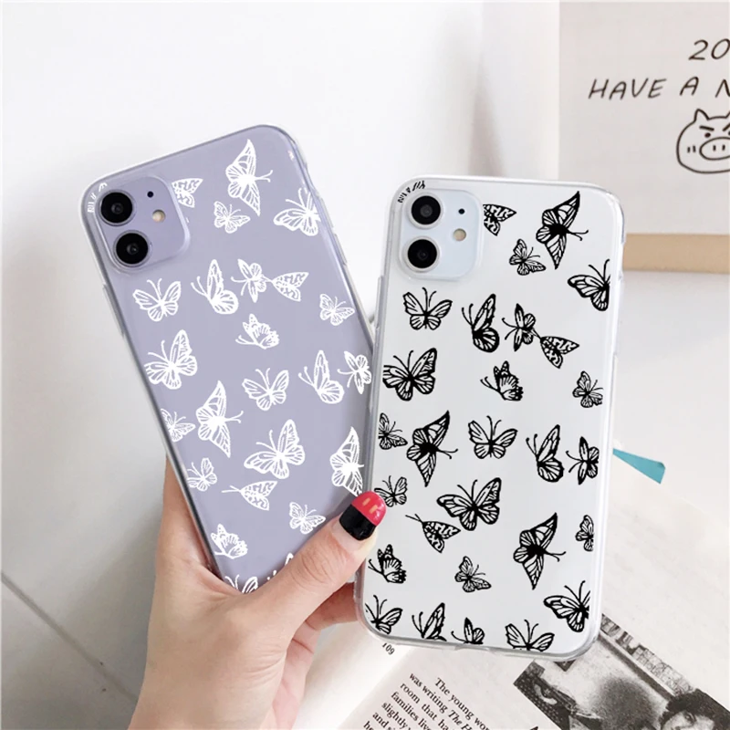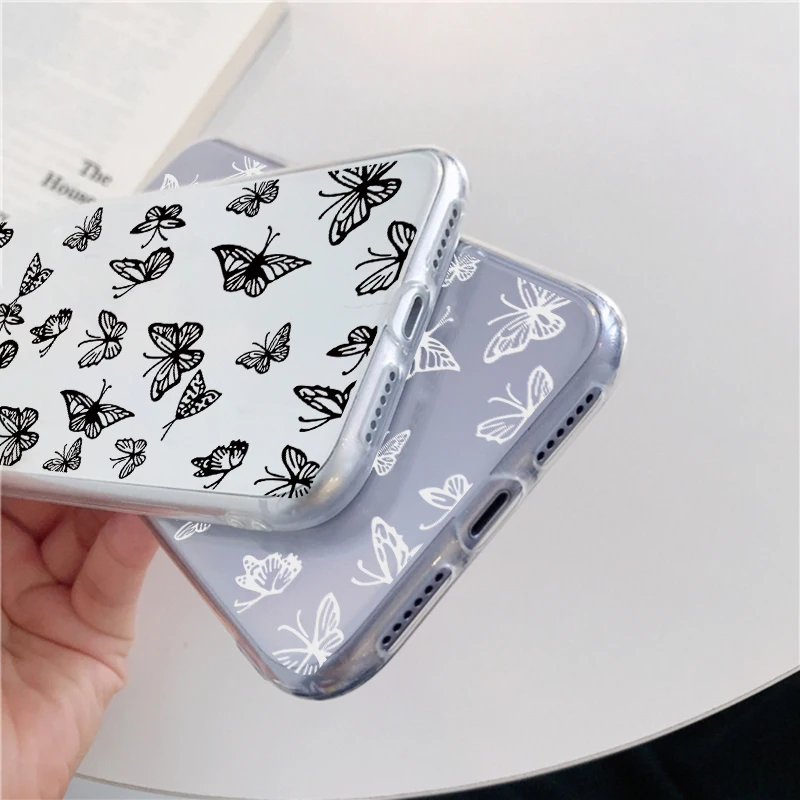 Чехол-бабочка для Xiaomi Redmi Note 9 8 10 T 8T 9S Mi 11 10 T Lite 7 5 6 9A 9C Poco X3 NFC F2 Pro Max, прозрачный чехол из ТПУ, черный, белый