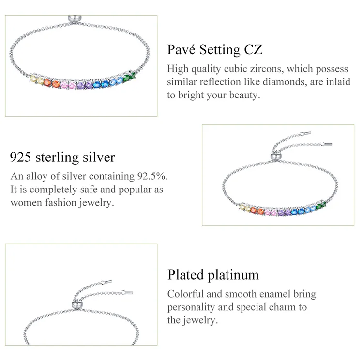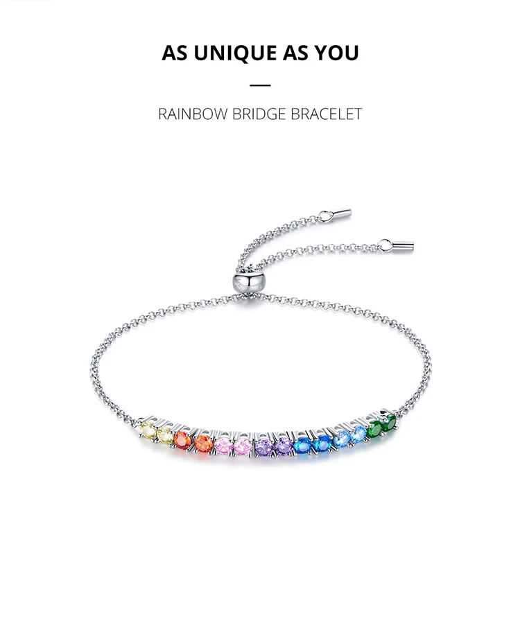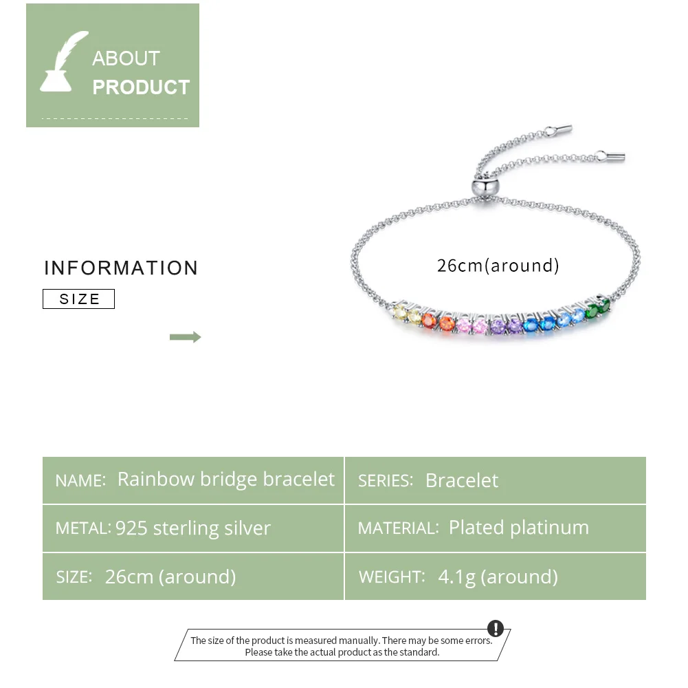 Название: браслет с радужным мостомРазмер: 26 смУайт: 4,1 гБесплатная Подарочная коробка: подарок для женщинПроложить настройки CZВысокое качество кубического циркония, которые обладают подобным отражением, как алмазы, инкрустированы яркой вашей красотой.925 пробы СеребряныйСплав серебра, содержащий 92.5%. Он полностью безопасен и тополя, как женские модные ювелирные изделия.Сертификат тестированияПродукты прошли проверку качества, пожалуйста, будьте уверены в покупке.
