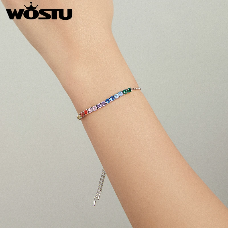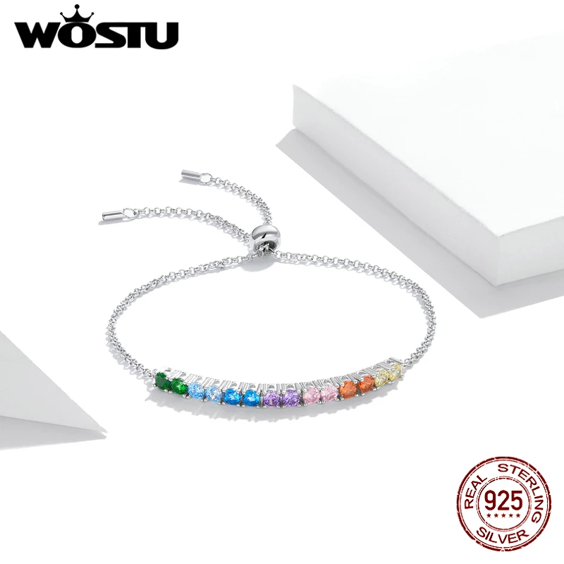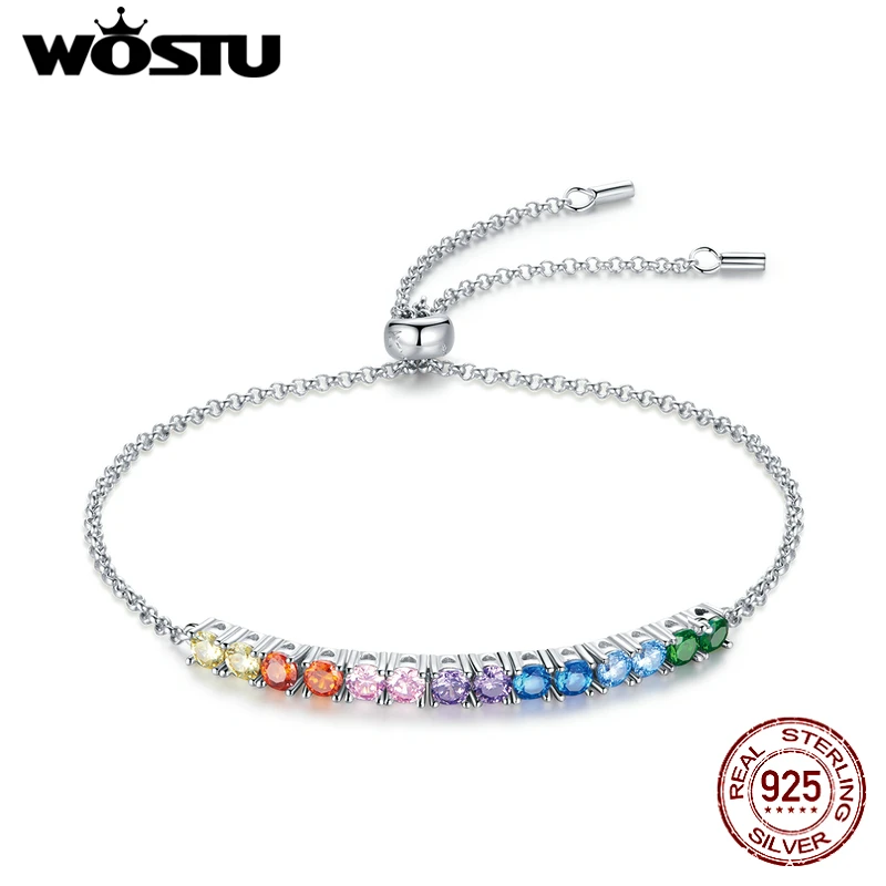 WOSTU Настоящее 925 стерлингового серебра простой красочные циркон ...
