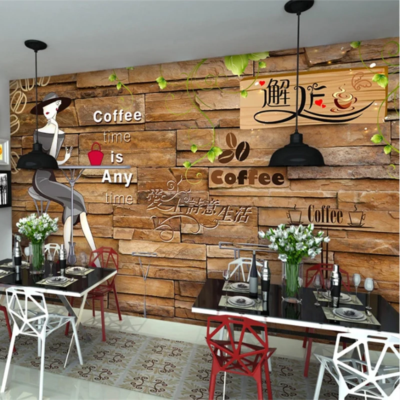 Пользовательские фотообои Ретро кирпичная стена кафе бар ресторан оснащение фон Настенная роспись современное творческое искусство 3D Настенные обои