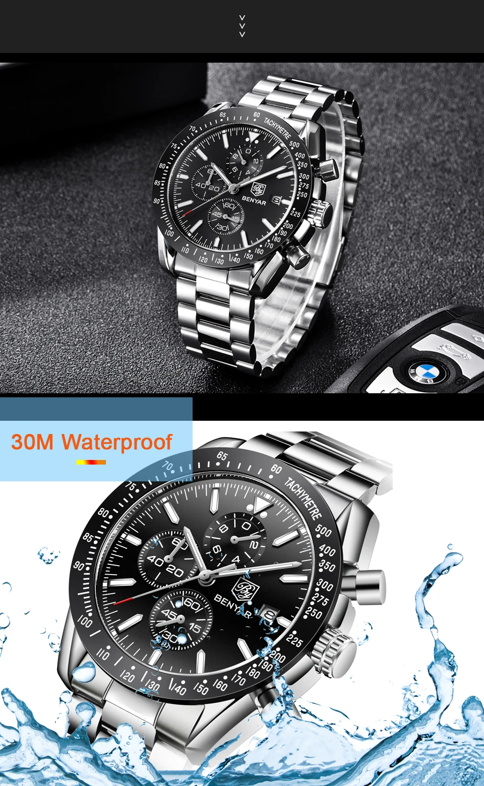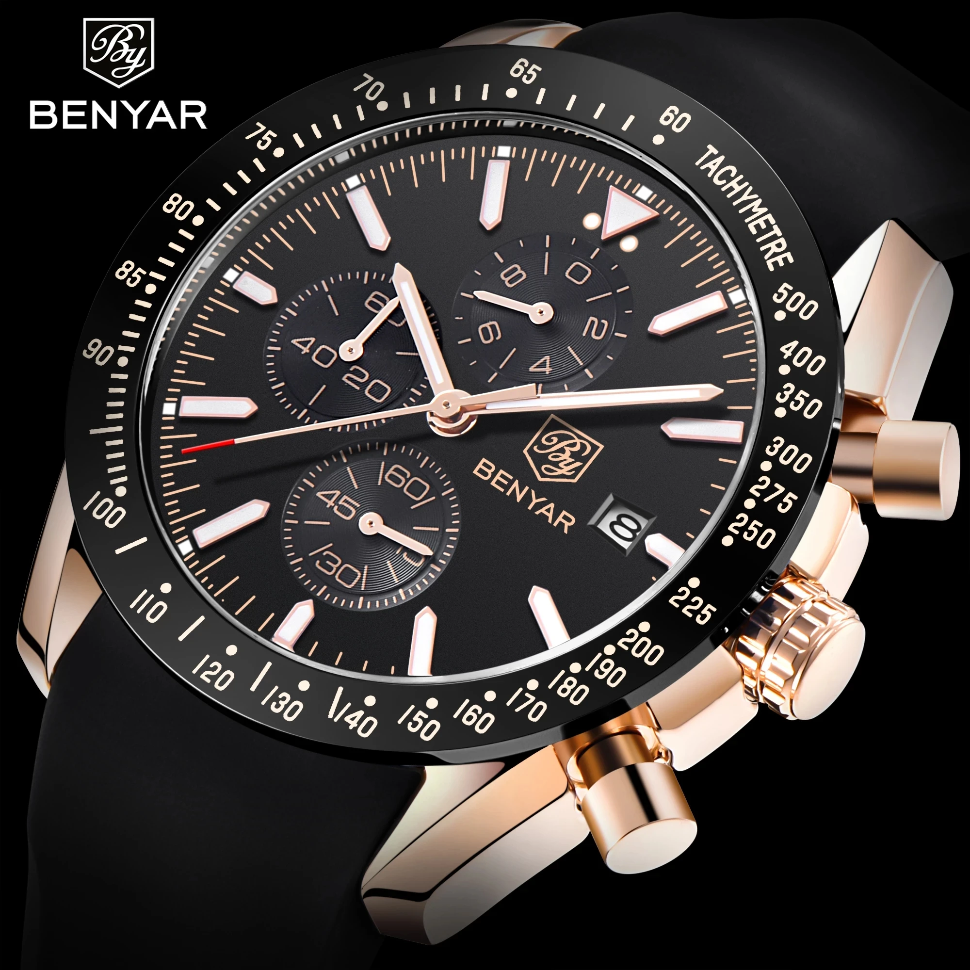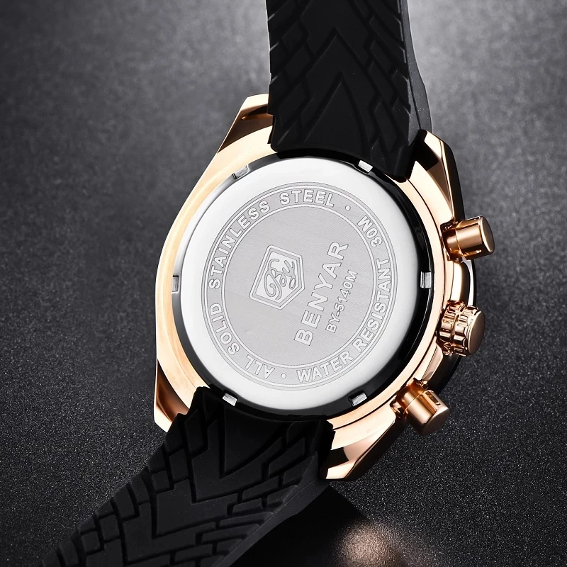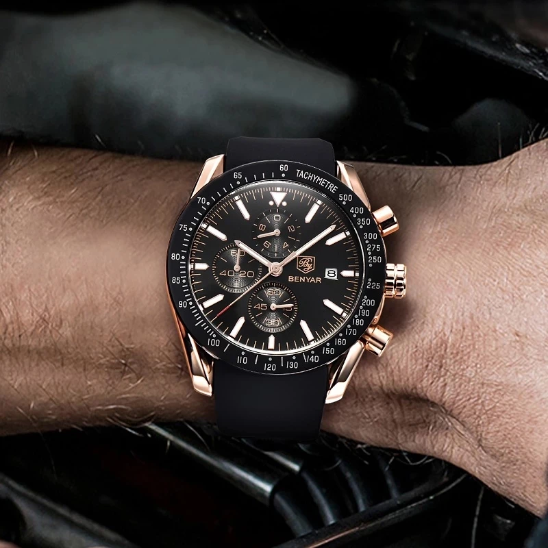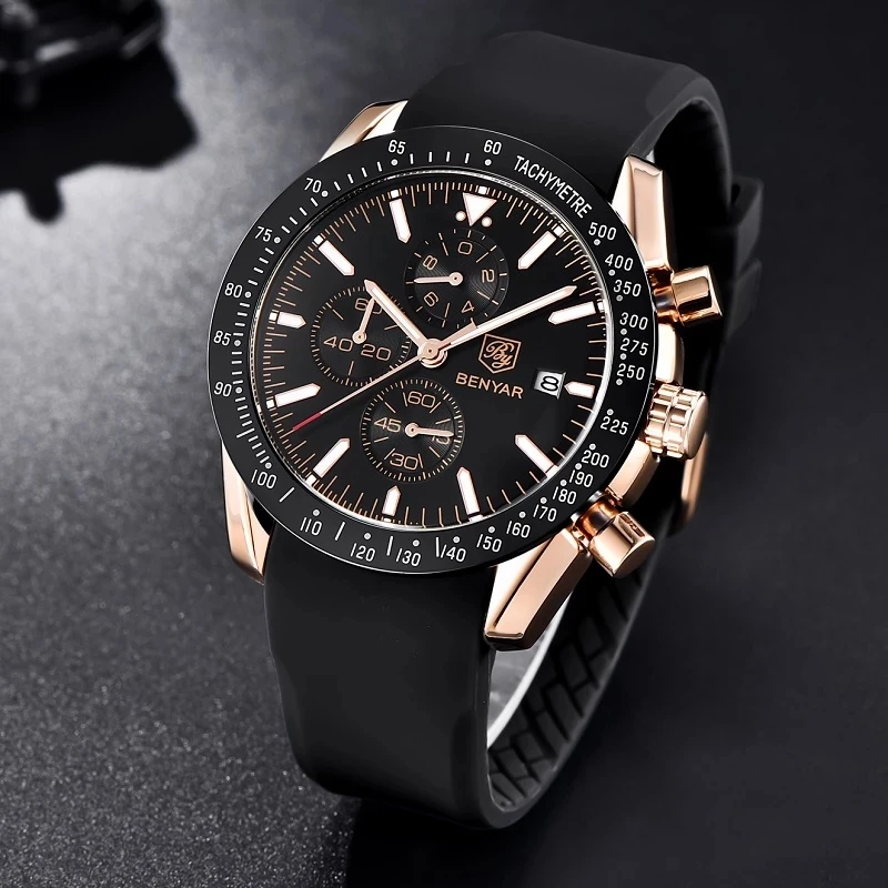 Часы-хронограф BENYAR Мужские кварцевые, люксовые брендовые водонепроницаемые Модные с автоматической датой