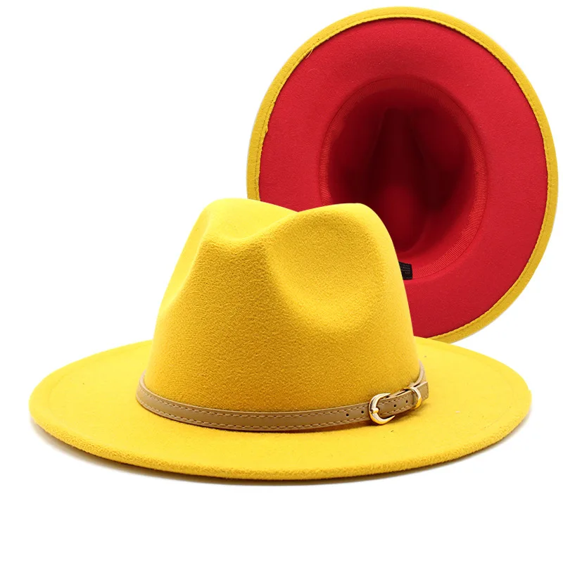 Шляпа фетровая Женская однотонная, с широкими полями, желтаябелая