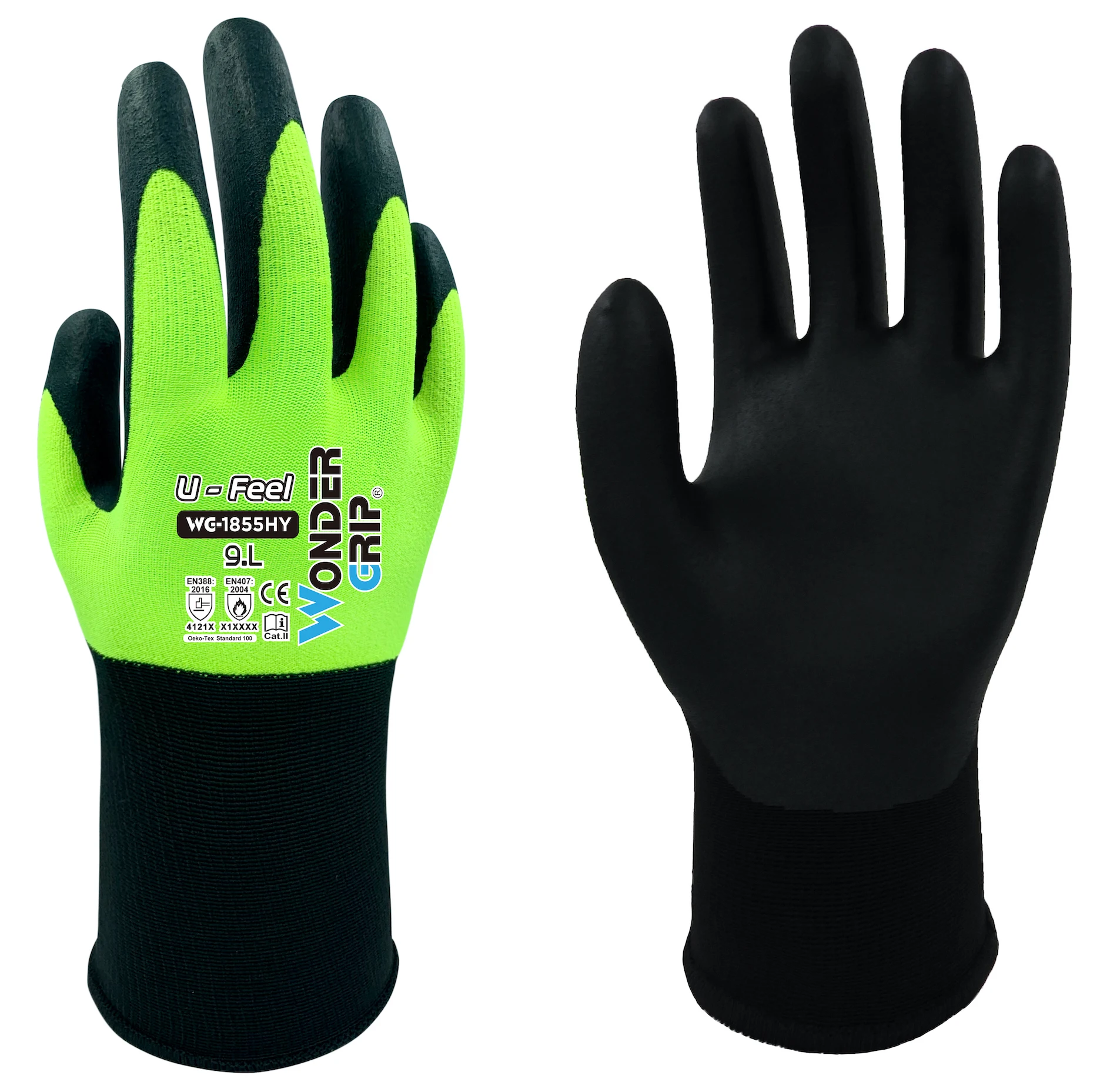 WG-1855HY U-приятный на ощупь и влитые с простым нитриловым покрытием построенные на 18 калибра полиэстер и спандекс. Наше удивительное сцепление обеспечивает превосходное тонкое и гладкое защитное покрытие, обеспечивая несравненные уровни чувствительности и ловкости на кончиках ваших пальцев. Невероятно тонкий и мягкий, он дает пользователям ощущение второй кожи, обеспечивая исключительный уровень комфорта и точности идеальные перчатки для точных задач.WG-1855HY не имеет силикона.