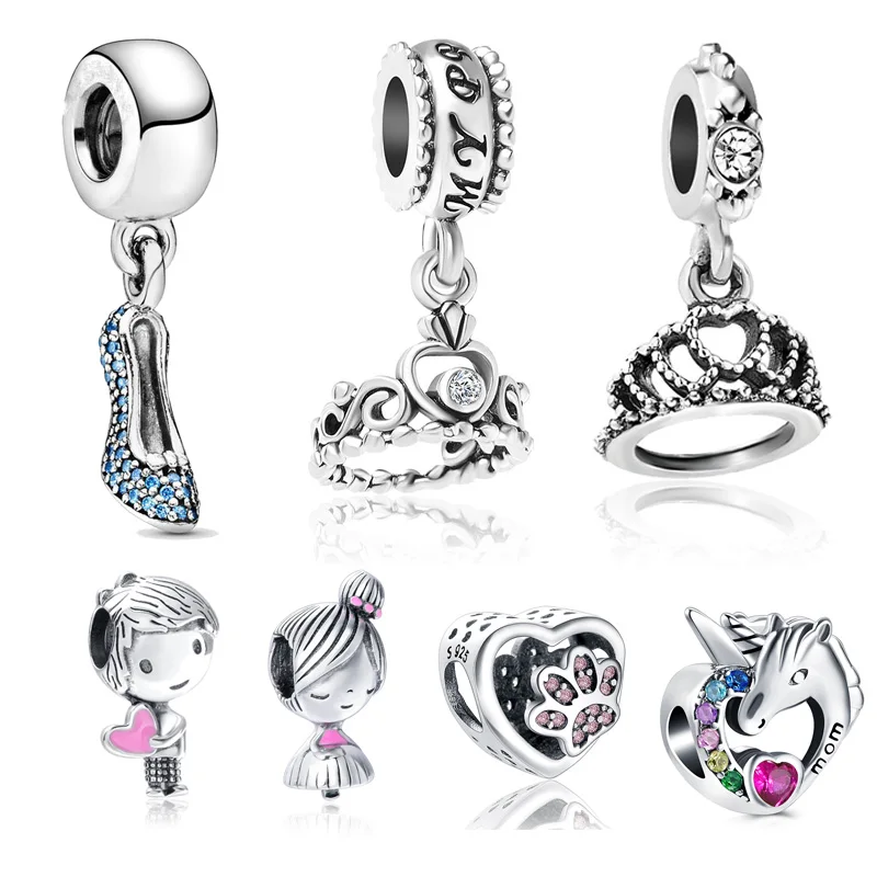 Новинка, туфли из стерлингового серебра 925 пробы с короной и кристаллами циркония, Висячие бусины, подходят для оригинального Pandora браслет, ювелирные изделия с бриллиантами, Оригинальные подарки