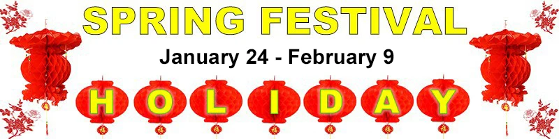 Мы будем наслаждаться долгим праздником с января по 24 по Feb-8 для крупнейшего китайского традиционного фестиваля-Весенний фестиваль (Китайский Лунный Новый год).