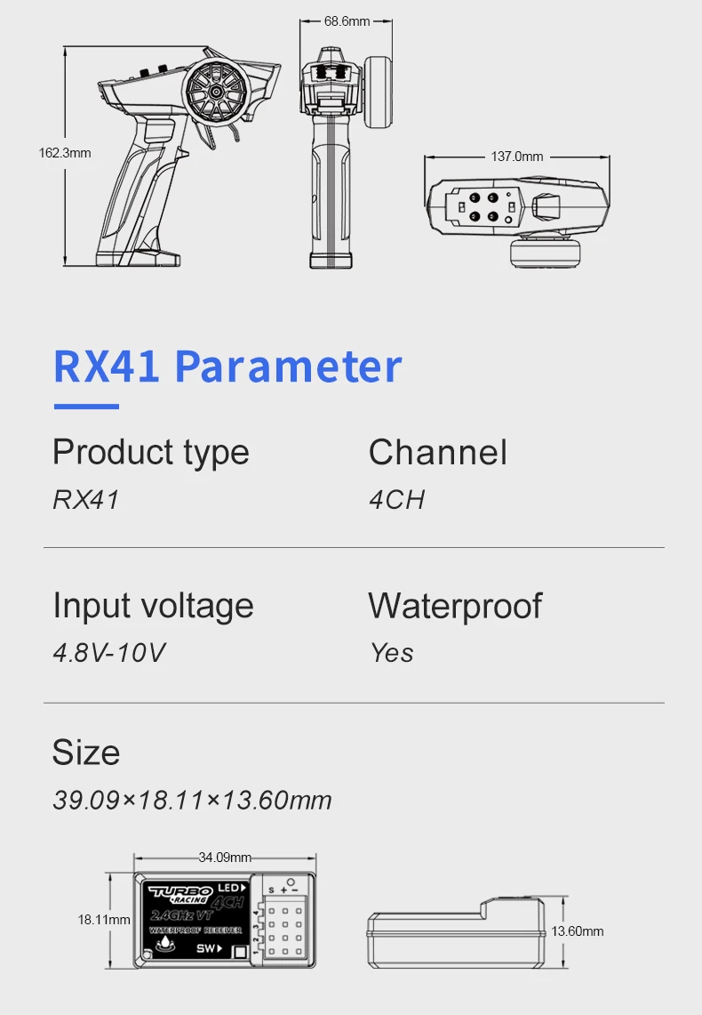 Пульт дистанционного управления P30 TURBO 91803G-VT 2,4 ГГц 3-канальный передатчик Радиоуправляемый контроллер с приемником RX41 для радиоуправляемого автомобиля лодки PK TG3 FS - GT3B