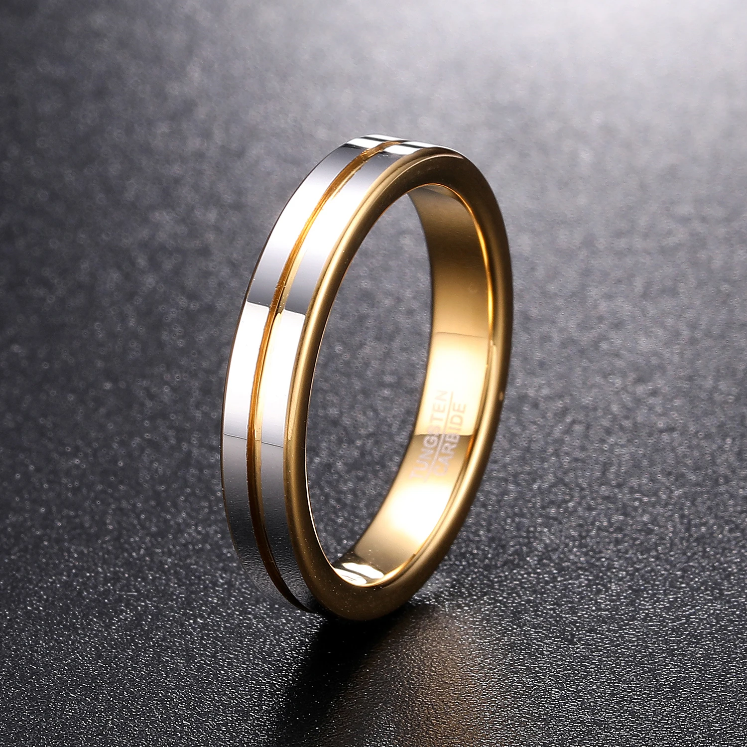 Кольцо Jqueen мужское из полированной вольфрамовой стали, ювелирное изделие с плоским и средним пазом и внутренней поверхностью, с золотой поверхностью, 4 мм