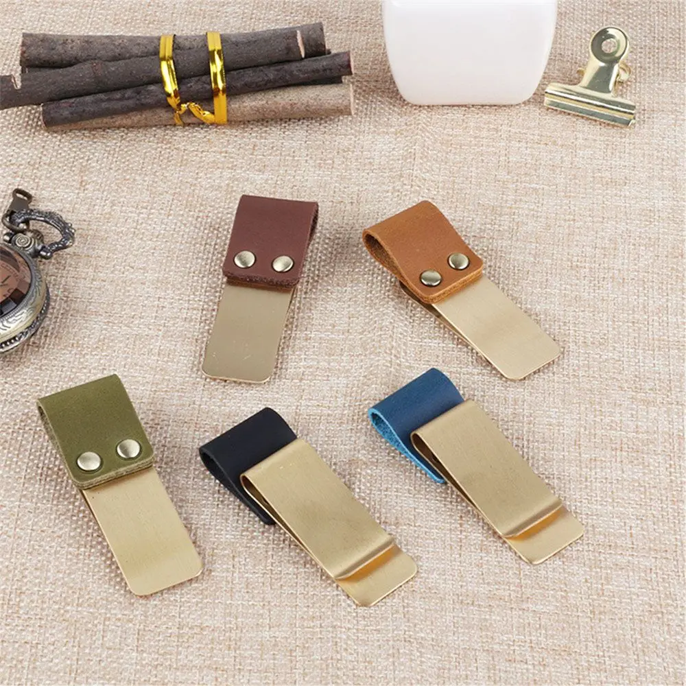 Зажимы для карандашей из натуральной кожи, металлические, латунные, ручка для записной книжки
