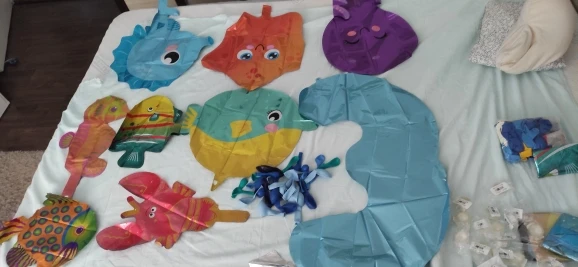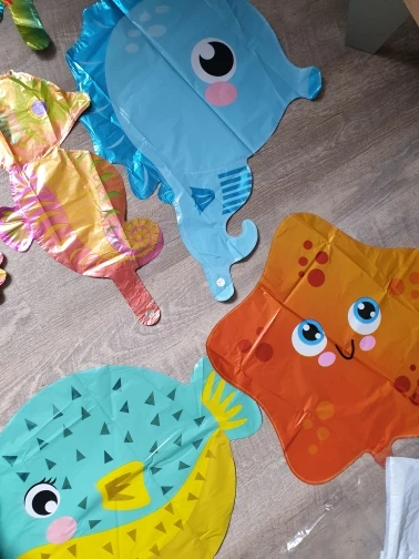Мне понравилось, что он приносит несколько вещей, как показано на рисунке, и они хорошего размера, рыба и звезда около 50 сантиметров. Мне очень понравилось, я еще не раздул их, я надеюсь, что если они работают правильно, чтобы соответствовать