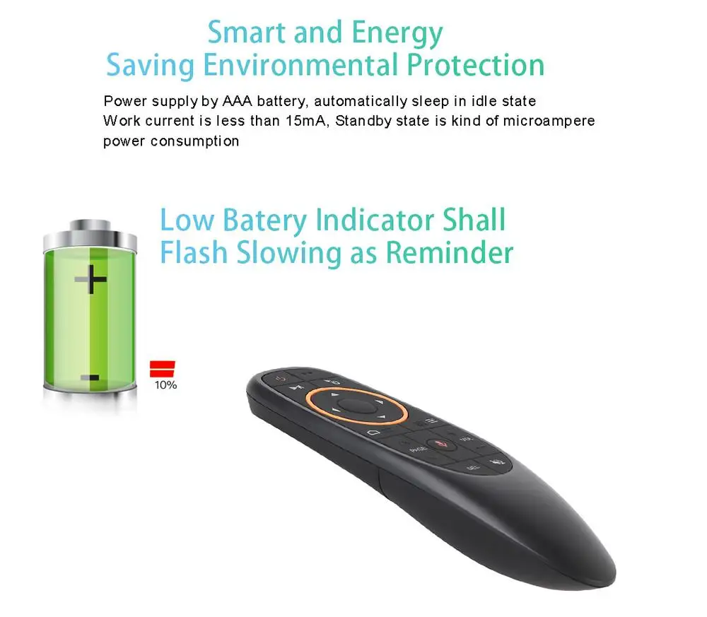 Этот беспроводной пульт дистанционного управления 2,4 ГГц специально разработан для легкого управления Smart TV, Android TV Box, ПК и другими устройствами. Подключи и работай, просто и удобно. Он принесет вам много удобства.Особенности:Беспроводное соединение 2,4G:Беспроводное подключение 2,4G через USB-приемник, подключи и работай, наслаждайтесь беспроводным управлением на дальнем расстоянии до 10 метров.Голосовое управление:Нажмите голосовую кнопку на пульте управления для поиска канала, который вы хотите увидеть, легко и удобно использовать.Встроенный гироскоп:Эта воздушная мышь может чувствовать изменение направления и скорости, так что вы можете двигаться прямо в воздухе, чтобы контролировать его.Эргономичный дизайн:Дугообразная конструкция в задней части воздушной мыши идеально облегает вашу ладонь, обеспечивая удобный ручной опыт.Удобно использовать:17 клавиш air mouse, легко контролировать громкость, страницы вверх/вниз, мышь влево/вправо и т. д. просто Сядьте на диван и наслаждайтесь.Примечание:1. Функцию голосового управления можно использовать только на ТВ-приставке с голосовым помощником Google.2. Батарейки ААА в комплект не входят, вам нужно купить два самостоятельно.3. Для пользователей Smart TV или Smart Projector перед покупкой убедитесь, что ваш телевизор или проектор можно подключить к мыши и использовать в обычном режиме (можно протестировать с помощью мыши).Характеристики:Номер модели: G10Материал: пластикКлючевые номера: 17Частота беспроводной связи: 2,4 ГГцРасстояние: 10 метровНапряжение: 3 вРабочий ток: <15 мАТок в режиме ожидания: <20 мААккумулятор: 2 * батарейки типа "ААА" (не входит в комплект)Цвет: черныйКомплектация:1 * Воздушная мышь1 * USB-приемник1 * Руководство пользователя (на английском языке)