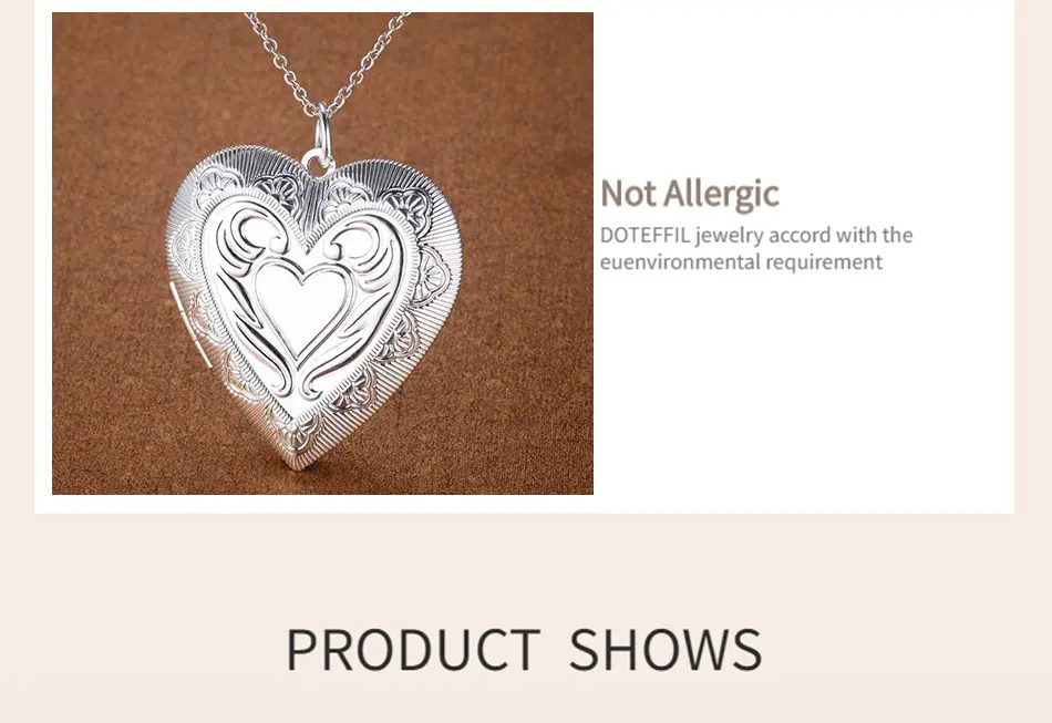 Ожерелье DOTEFFIL из стерлингового серебра 925 пробы в форме сердца с фоторамкой для женщин, модные ювелирные украшения для свадебной вечеринки