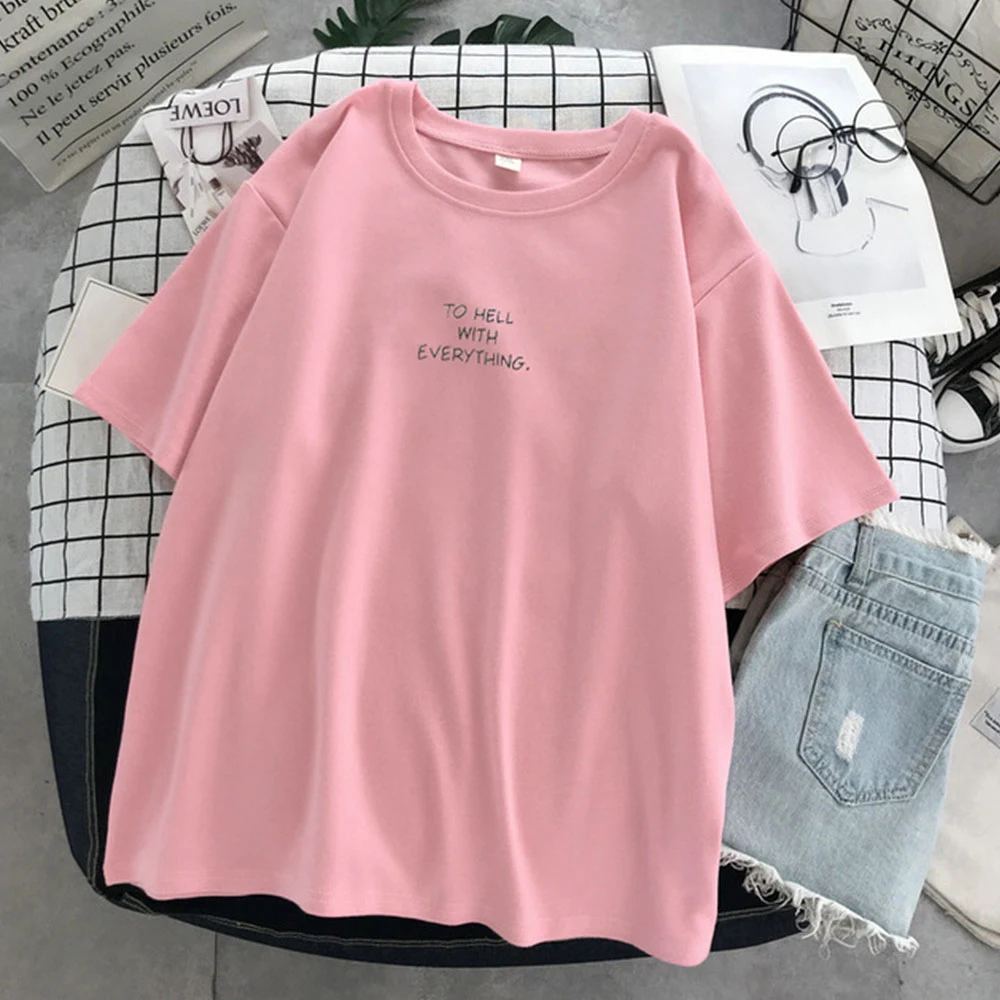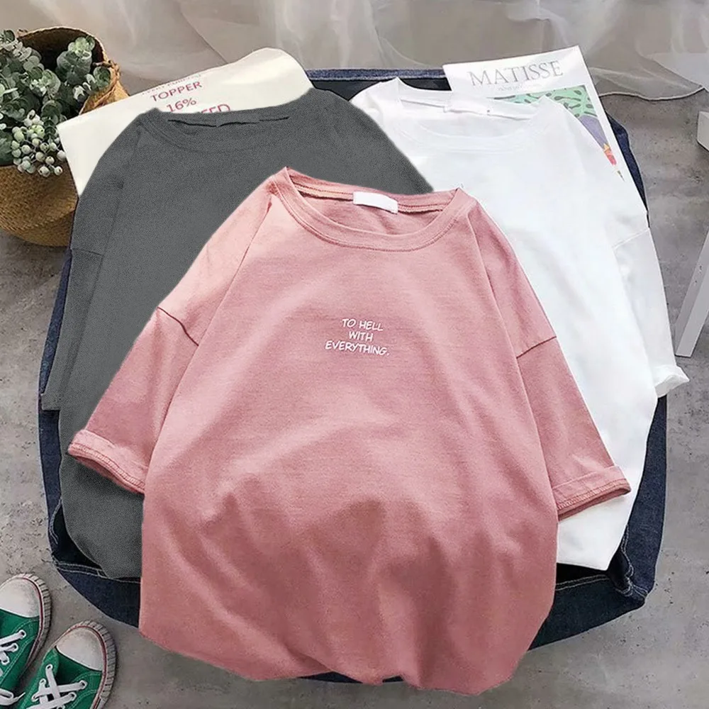 Футболка женская свободного покроя с коротким рукавом, топ с надписью Over size d в стиле Харадзюку, Повседневная рубашка размера плюс размера в Корейском стиле, на лето
