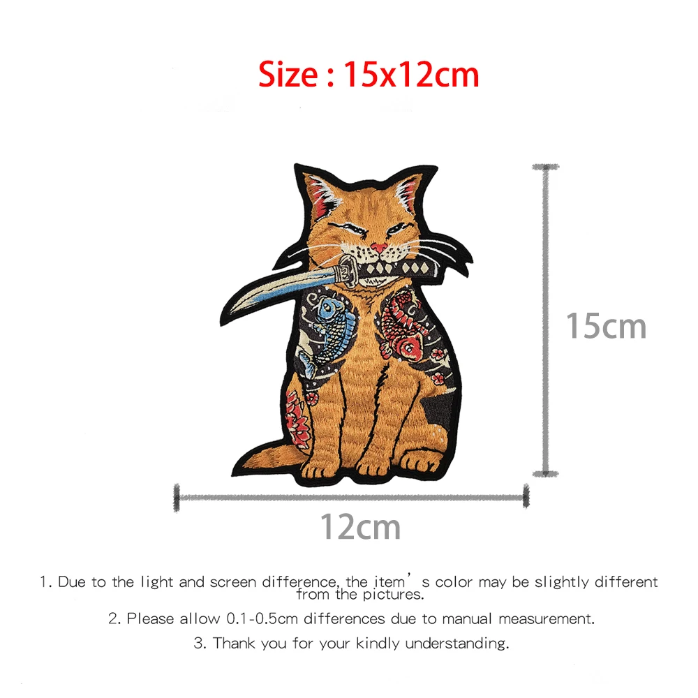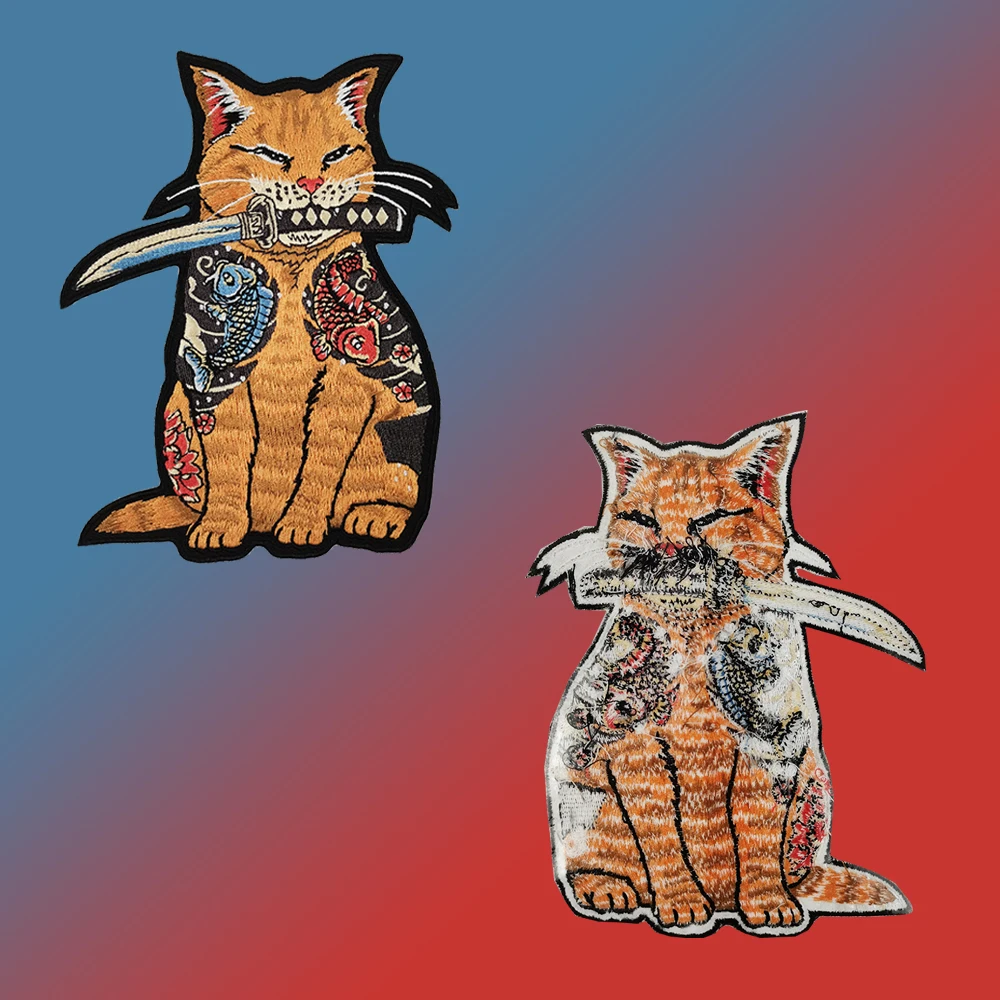 Татуировки кошка с ножом патчи японская вышитая утюгом для одежды Сделай Сам мультфильм патч рубашки твил наклейки крутые аппликации