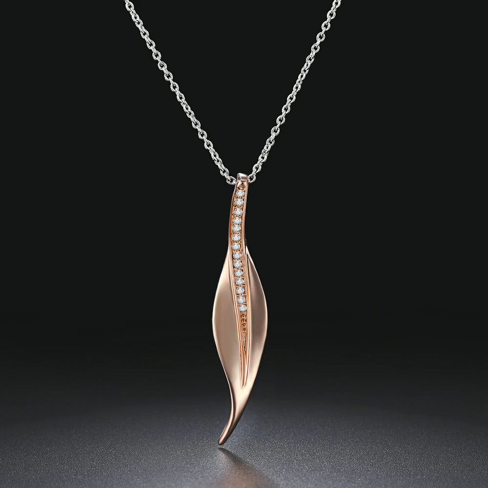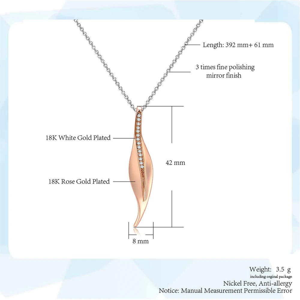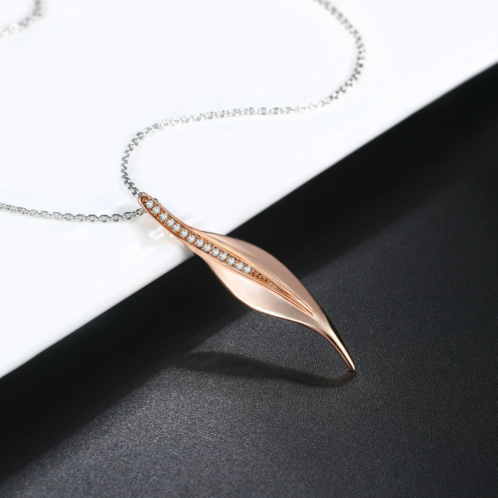 Ожерелье ZHOUYANG с подвеской для женщин, Простое розовое золото, длинная форма листа, кубический цирконий, двухцветный серебряный цвет, модные ювелирные изделия N041