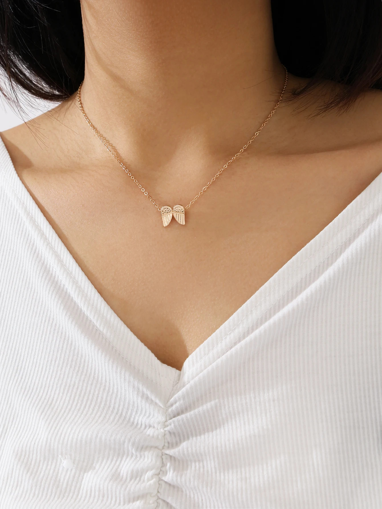 Мода контракт металла золотого цвета крошечные с ангельскими крыльями ожерелье с подвеской для женщин пара цепочка на шею, подарок, ювелирное изделие аксессуары