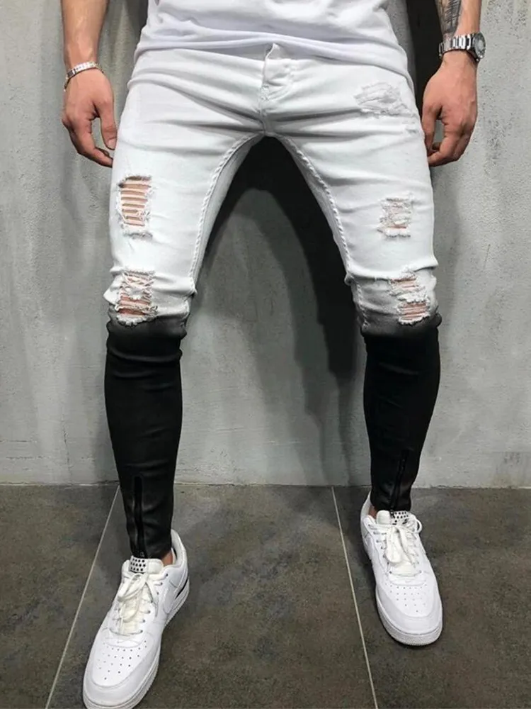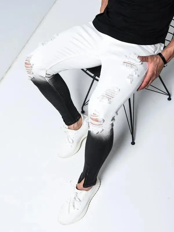 Джинсы-Карандаш мужские стрейчевые, рваные зауженные брюки из денима, уличная одежда с градиентом, белые черные