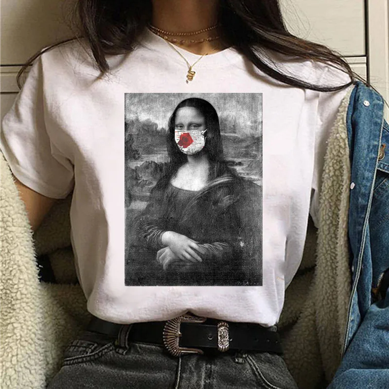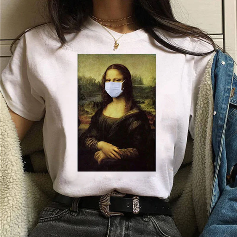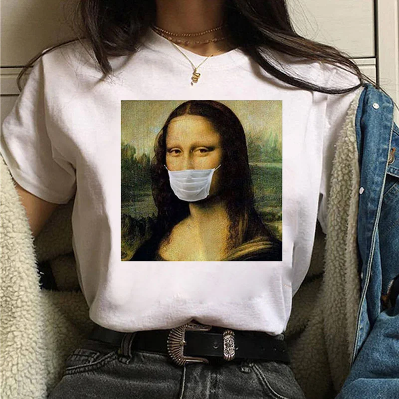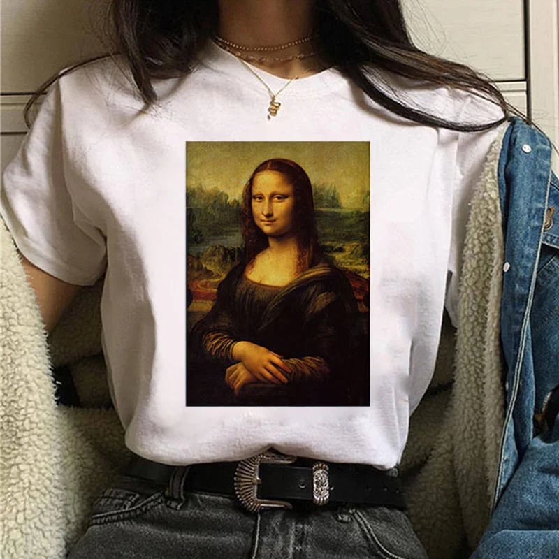 Летняя модная женская футболка, Повседневная забавная белая футболка с Моной Лизой, женские футболки, женская футболка с коротким рукавом, Tumblr