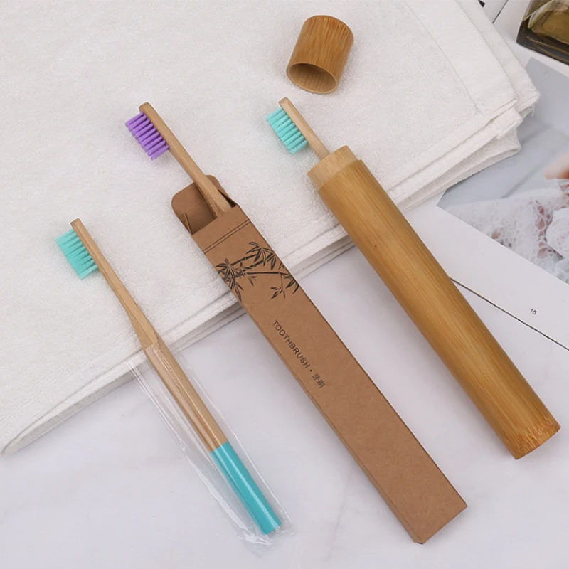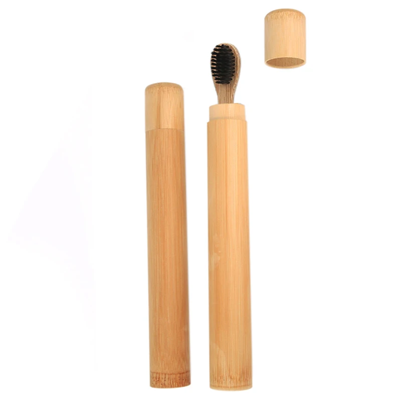 Бамбуковая зубная щетка + Дорожный Чехол Ручная работа экологически чистый 100% зубная щетка из натурального бамбука зубная щетка тубус портативный для зубные щетки для взрослых