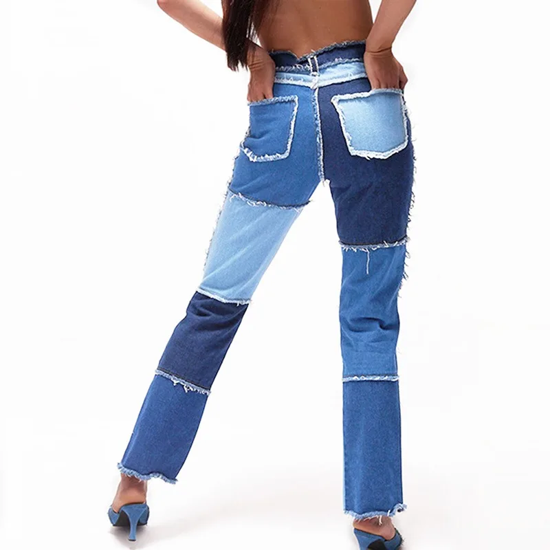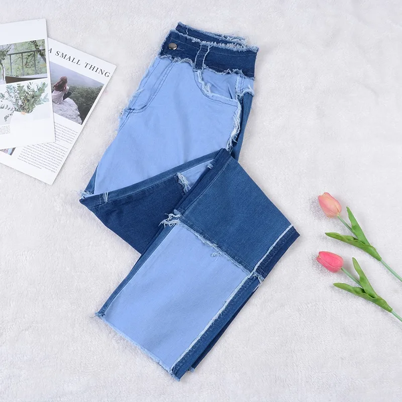 Джинсы женские прямые в стиле пэчворк, повседневные свободные джинсы-бойфренды с завышенной талией, винтажные джинсы из денима с широкими штанинами, на весну