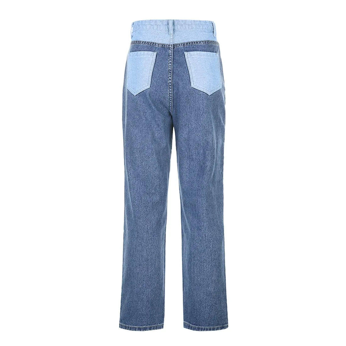Pants Women StreetwearHigh Waisted Denim Straight Trousers