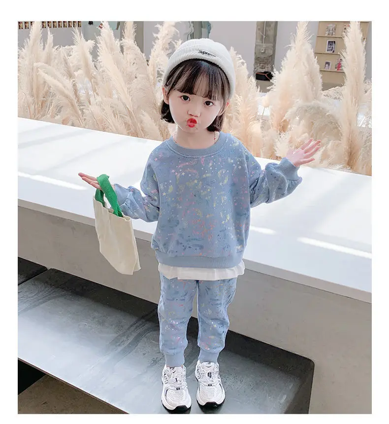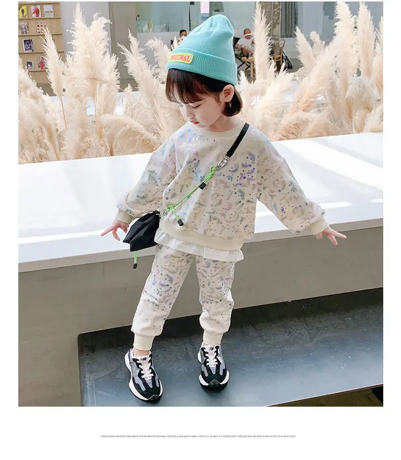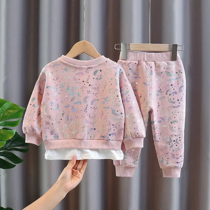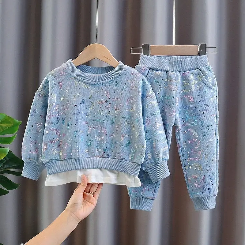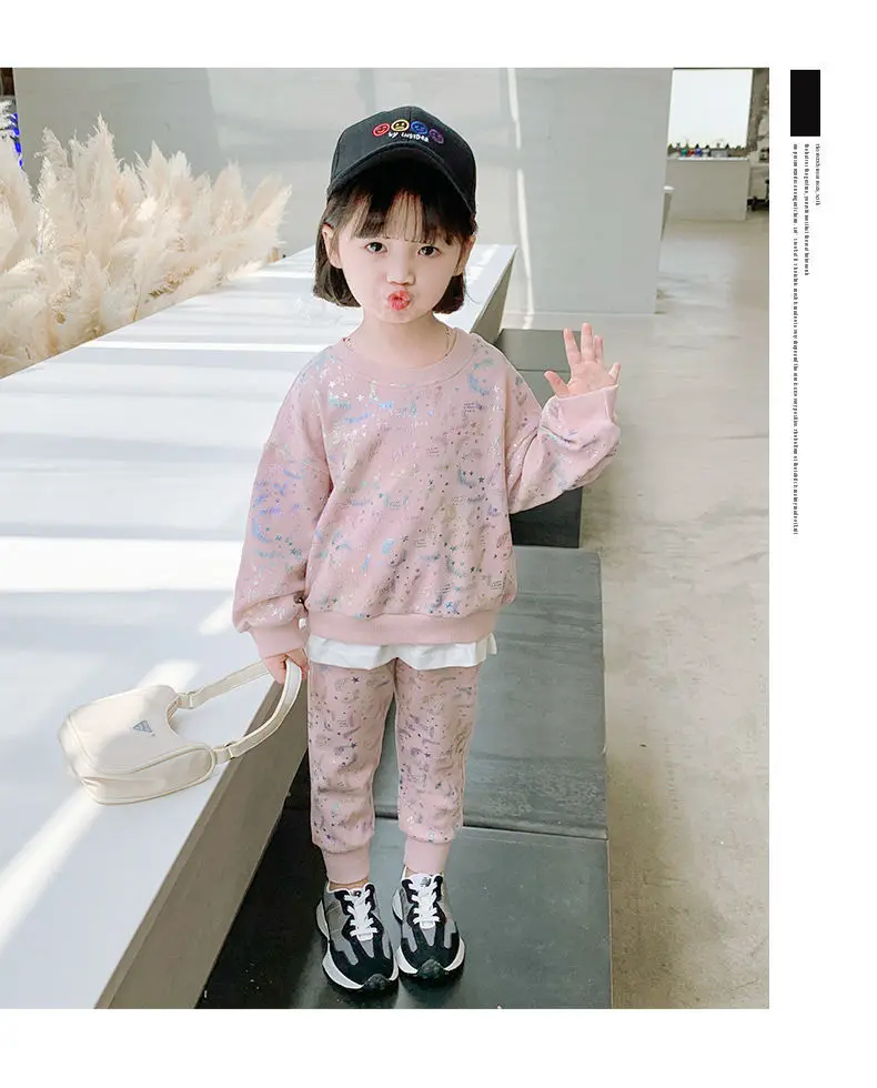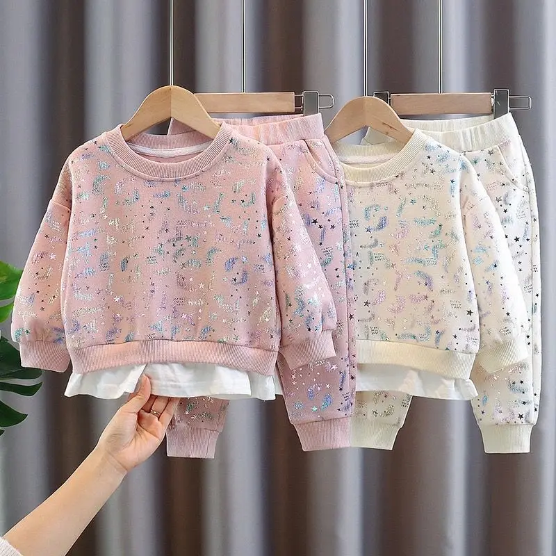 3 цвета, 2021, комплект одежды для девочек и мальчиков, свитер с блестками + длинные брюки, детские повседневные Костюмы, весенне-осенняя одежда, детская одежда