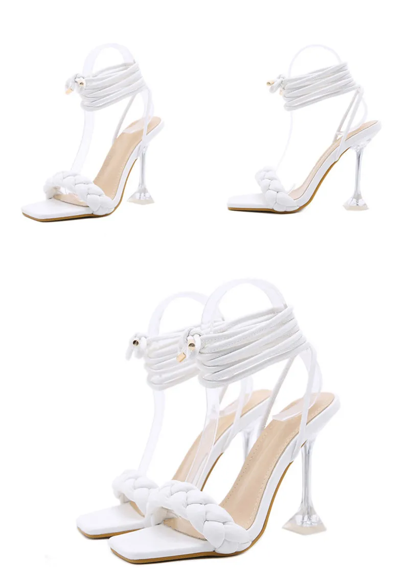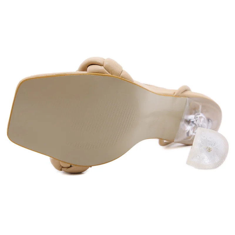 Женские плетеные сандалии 2021, летние модные дизайнерские Брендовые женские пикантные сандалии на высоком прозрачном каблуке с ремешками, туфли с квадратным носком