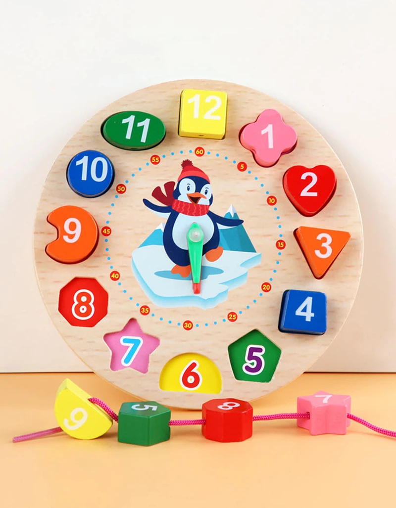 Монтессори мультфильм животных Образовательные деревянные бисером Геометрия цифровые часы Пазлы гаджеты соответствующие часы игрушки для детей
