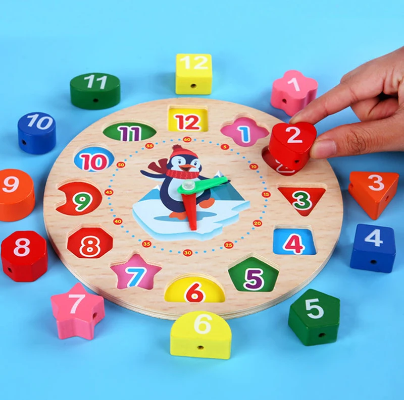 Развивающие деревянные геометрические цифровые часы Монтессори с животными из мультфильмов, пазлы, гаджеты, подходящие часы, игрушки для детей