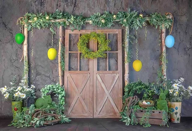Пасхальные фоны для фотосъемки, деревянная дверь, трава, весенние цветы, яйца, украшение для детской вечевечерние, Фотофон для фотостудии