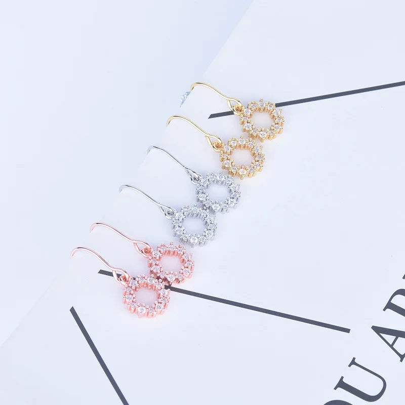 Женские серьги-кольца ZHOUYANG, 3 цвета, с кристаллами, KBE388