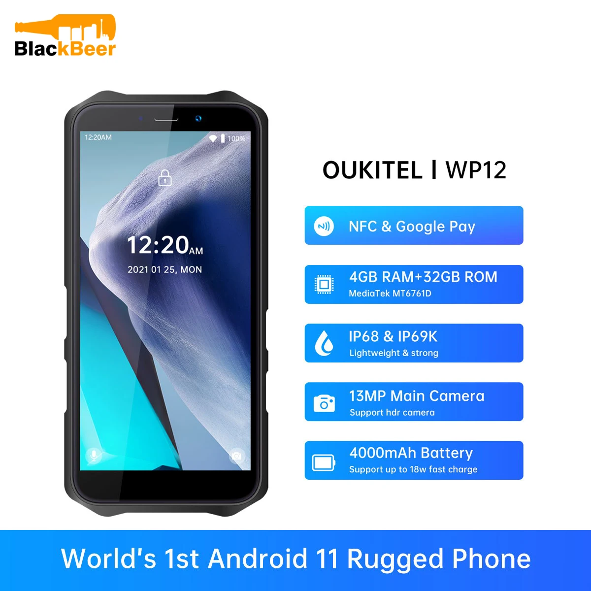 Защищенный Смартфон Oukitel WP12, 4G, 5,5 дюйма, мобильный телефон, IP68IP69K, Adndroid 11, четырёхъядерный, 4 Гб + 32 ГБ, 4000 мАч, NFC